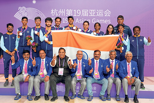 ਹਾਂਗਜ਼ੂ: ਭਾਰਤ ਦੀ ਪੁਰਸ਼ ਅਤੇ ਮਹਿਲਾ ਸ਼ਤਰੰਜ ਟੀਮਾਂ ਨੇ ਅੱਜ ਇੱਥੇ ਏਸ਼ਿਆਈ ਖੇਡਾਂ ਵਿੱਚ ਚਾਂਦੀ ਦਾ ਤਗ਼ਮਾ ਜਿੱਤਿਆ। ਭਾਰਤੀ ਮਹਿਲਾ ਟੀਮ ਨੇ ਆਪਣੇ ਆਖ਼ਰੀ ਗੇੜ ਦੇ ਮੁਕਾਬਲੇ ਵਿੱਚ ਦੱਖਣੀ ਕੋਰੀਆ ਨੂੰ 4-0 ਨਾਲ ਹਰਾਇਆ। ਗਰੈਂਡ ਮਾਸਟਰ ਹਰਿਕਾ ਦਰੋਣਾਵੱਲੀ, ਕੌਮਾਂਤਰੀ ਮਾਸਟਰ ਵੈਸ਼ਾਲੀ ਰਮੇਸ਼ਬਾਬੂ, ਕੌਮਾਂਤਰੀ ਮਾਸਟਰ ਵੰਤਿਕਾ ਅਗਰਵਾਲ ਅਤੇ ਮਹਿਲਾ ਗਰੈਂਡਮਾਸਟਰ ਸਵਿਤਾ ਸ੍ਰੀ ਬਸਕਰ ਨੇ ਆਪੋ-ਆਪਣੀਆਂ ਬਾਜ਼ੀਆਂ ਜਿੱਤੀਆਂ। ਮਹਿਲਾ ਭਾਰਤੀ ਟੀਮ ਨੇ ਇਸ ਤਰ੍ਹਾਂ 15 ਅੰਕਾਂ ਨਾਲ ਆਪਣੀ ਮੁਹਿੰਮ ਦੀ ਸਮਾਪਤੀ ਕੀਤੀ। ਸਿਖਰਲਾ ਦਰਜਾ ਪ੍ਰਾਪਤ ਚੀਨ ਨੇ 17 ਅੰਕਾਂ ਨਾਲ ਸੋਨ ਤਗ਼ਮਾ ਜਿੱਤਿਆ। ਭਾਰਤੀ ਪੁਰਸ਼ ਟੀਮ ਨੇ ਫਿਲਪੀਨਜ਼ ਖ਼ਿਲਾਫ਼ 3.5-0.5 ਦੀ ਜਿੱਤ ਆਪਣੀ ਮੁਹਿੰਮ ਸਮਾਪਤ ਕੀਤੀ। ਸਿਖਰਲਾ ਦਰਜਾ ਪ੍ਰਾਪਤ ਅਰਜੁਨ ਅਰਗੈਸੀ, ਵਿਦਿੱਤ ਗੁਜਰਾਤੀ ਅਤੇ ਹਰਿਕ੍ਰਿਸ਼ਨ ਪੇਂਟਾਲਾ ਨੇ ਆਪਣੀ-ਆਪਣੀ ਬਾਜ਼ੀ ਜਿੱਤੀ, ਜਦਕਿ ਆਰ ਪ੍ਰਗਨਾਨੰਦਾ ਨੇ ਆਪਣੀ ਬਾਜ਼ੀ ਡਰਾਅ ਕਰਵਾਈ। ਭਾਰਤ ਸੋਨ ਤਗ਼ਮਾ ਜੇਤੂ ਇਰਾਨ ਮਗਰੋਂ ਦੂਜੇ ਸਥਾਨ ’ਤੇ ਰਿਹਾ। -ਪੀਟੀਆਈ