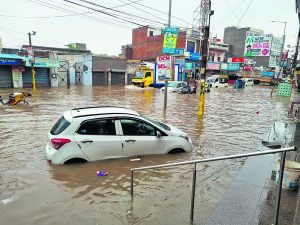 ਬਠਿੰਡਾ ’ਚ ਅੱਜ ਦੁਪਹਿਰ ਬਾਰਸ਼ ਲਗਾਤਾਰ 2 ਘੰਟੇ ਪਈ ਬਰਸਾਤ ਕਾਰਨ ਸ਼ਹਿਰ ਦੀਆਂ ਸੜਕਾਂ ਜਲ-ਥਲ ਹੋ ਗਈਆਂ ਮੌਨਸੂਨ ਦੀ ਦੂਜੀ ਬਾਰਸ਼ ਨੇ ਬਰਸਾਤੀ ਪਾਣੀ ਲਈ ਹਰ ਸਾਲ ਕਰੋੜਾਂ ਰੁਪਏ ਦਾ ਬਜਟ ਰੱਖਣ ਵਾਲੀ ਬਠਿੰਡਾ ਨਗਰ ਨਿਗਮ ਦੀ ਪੋਲ ਖੁੱਲ੍ਹ ਰੱਖ ਦਿੱਤੀ। ਅੱਜ ਬਠਿੰਡਾ ਦੇ ਪੌਸ਼ ਖੇਤਰ ਜਿਨ੍ਹਾਂ ਵਿੱਚ ਆਈਜੀ, ਐੱਸਐੱਸਪੀ, ਡਿਪਟੀ ਕਮਿਸ਼ਨਰ, ਸੈਸ਼ਨ ਜੱਜ ਹਾਊਸ, ਸਮੇਤ ਸਮੁੱਚਾ ਕੋਰਟ ਕੰਪਲੈਕਸ ਦੀਆਂ ਸੜਕਾਂ ਪਾਣੀ ਵਿੱਚ ਡੁੱਬ ਗਈਆਂ ਇਸ ਤਰ੍ਹਾਂ ਸ਼ਹਿਰ ਦਾ ਮਾਲ ਰੋਡ ਪਰਸਰਾਮ ਨਗਰ ਸਿਰਕੀ ਬਾਜ਼ਾਰ, ਸਲੱਮ ਖੇਤਰਾਂ ਦੀਆਂ ਸੜਕਾਂ ਵੀ ਪਾਣੀ ਵਿੱਚ ਡੁੱਬ ਗਈਆਂ ਯੂਨੀਵਰਸਿਟੀ ਦੇ ਖੇਤਰੀ ਕੈਂਪਸ ਤੋਂ ਮਿਲੀ ਜਾਣਕਾਰੀ ਅਨੁਸਾਰ ਬਠਿੰਡਾ ਵਿੱਚ ਸਵੇਰੇ ਸਾਢੇ ਅੱਠ ਵਜੇ ਤੱਕ 59.6 ਐੱਮਐੱਮ ਬਾਰਸ਼ ਦਰਜ ਕੀਤੀ ਗਈ।