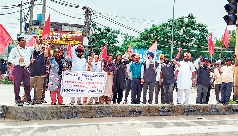 ਚਮਕੌਰ ਸਾਹਿਬ (ਸੰਜੀਵ ਬੱਬੀ): ਇਥੇ ਸ੍ਰੀ ਵਿਸ਼ਵਕਰਮਾ ਬਿਲਡਿੰਗ ਉਸਾਰੀ ਕਿਰਤੀ ਕਾਮਾ ਯੂਨੀਅਨ ਵੱਲੋਂ ਮਨੀਪੁਰ ਹਿੰਸਾ ਦਾ ਸ਼ਿਕਾਰ ਹੋਈਆਂ ਔਰਤਾਂ ਨੂੰ ਇਨਸਾਫ ਦਿਵਾਉਣ ਲਈ ਇੱਥੋਂ ਦੇ ਲੇਬਰ ਚੌਕ ਵਿੱਚ ਬਲਾਕ ਪ੍ਰਧਾਨ ਬਲਵਿੰਦਰ ਸਿੰਘ ਭੈਰੋਂ ਮਾਜਰਾ ਅਤੇ ਸੀਨੀਅਰ ਮੀਤ ਪ੍ਰਧਾਨ ਜਰਨੈਲ ਸਿੰਘ ਜੈਲਾ ਦੀ ਪ੍ਰਧਾਨਗੀ ਹੇਠ ਰੋਸ ਪ੍ਰਦਰਸ਼ਨ ਕੀਤਾ ਗਿਆ। ਮਜ਼ਦੂਰਾਂ ਦੇ ਇੱਕਠ ਨੂੰ ਸੰਬੋਧਨ ਕਰਦੇ ਹੋਏ ਜਰਨਲ ਸਕੱਤਰ ਮਿਸਤਰੀ ਮਨਮੋਹਨ ਸਿੰਘ ਕਾਲਾ, ਸਲਾਹਕਾਰ ਮਲਾਗਰ ਸਿੰਘ ਖਮਾਣੋਂ , ਗੁਰਨਾਮ ਸਿੰਘ, ਅਜੈਬ ਸਿੰਘ ਅਤੇ ਕਮਲਜੀਤ ਸਿੰਘ ਨੇ ਕਿਹਾ ਕਿ ਉਨ੍ਹਾਂ ਦੀ ਯੂਨੀਅਨ ਮਨੀਪੁਰ ਵਿੱਚ ਵਾਪਰੀ ਘਟਨਾ ਦੀ ਨਿਖੇਧੀ ਕਰਦੀ ਹੈ।