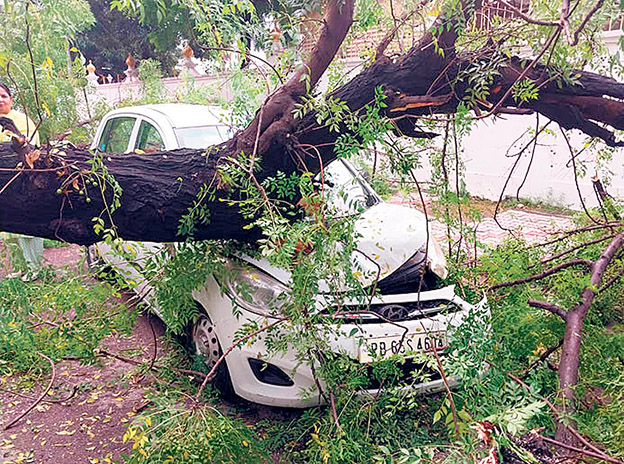 ਮੁਹਾਲੀ ਵਿੱਚ ਚੱਲਦੀ ਕਾਰ ’ਤੇ ਦਰੱਖ਼ਤ ਡਿੱਗਿਆ
