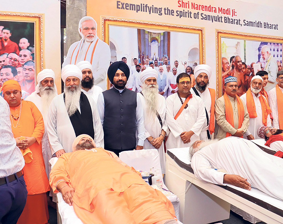 ਚੰਡੀਗੜ੍ਹ: ਚੰਡੀਗੜ੍ਹ ਵੈਲਫੇਅਰ ਟਰੱਸਟ ਦੇ ਸੰਸਥਾਪਕ ਸਤਨਾਮ ਸਿੰਘ ਸੰਧੂ ਦੀ ਅਗਵਾਈ ਹੇਠ ਪ੍ਰਧਾਨ ਮੰਤਰੀ ਨਰਿੰਦਰ ਮੋਦੀ ਦਾ 73ਵਾਂ ਜਨਮ ਦਿਨ ਸੈਕਟਰ-38 ਵਿਖੇ ਮਨਾਇਆ ਗਿਆ। ਇਸ ਮੌਕੇ ਹਿੰਦੂ, ਮੁਸਲਿਮ, ਸਿੱਧ, ਇਸਾਈ, ਜੈਨ, ਬੋਧੀ ਤੇ ਪਾਰਸੀ ਧਰਮ ਦੇ ਲੋਕਾਂ ਨੇ ਇਕੱਠੇ ਖੂਨਦਾਨ ਕਰਕੇ ‘ਇਕ ਰਾਸ਼ਟਰ, ਇਕ ਖੂਨ’ ਦਾ ਸੰਦੇਸ਼ ਦਿੱਤਾ।