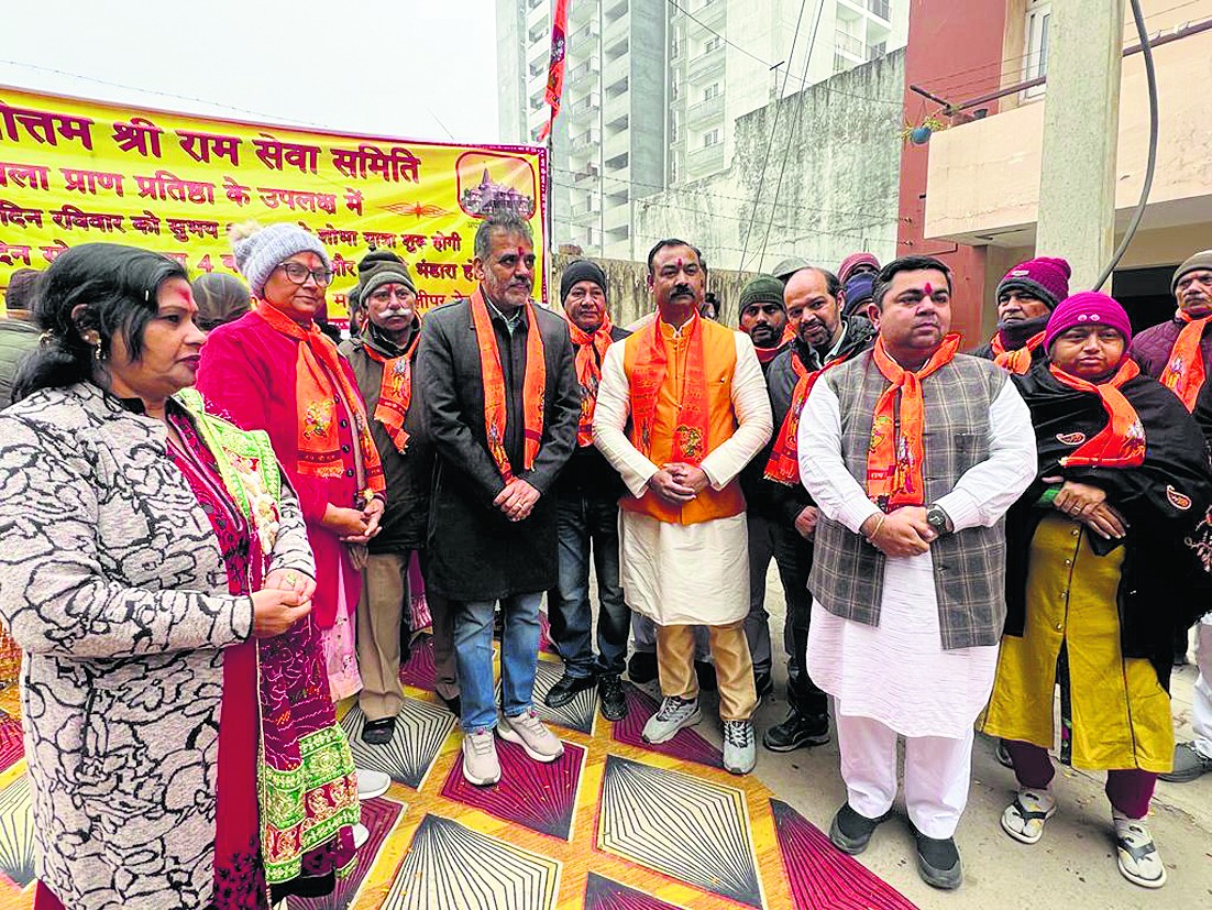ਜ਼ੀਰਕਪੁਰ (ਨਿੱਜੀ ਪੱਤਰ ਪ੍ਰੇਰਕ): ਅਯੁੱਧਿਆ ’ਚ ਪ੍ਰਾਣ ਪ੍ਰਤਿਸ਼ਠਾ ਸਮਾਗਮ ਸਬੰਧੀ ਜ਼ੀਰਕਪੁਰ ਵਿੱਚ ਵਿਸ਼ਾਲ ਸੋਭਾ ਯਾਤਰਾ ਕੱਢੀ ਗਈ। ਇਸ ਦੌਰਾਨ ਇਲਾਕੇ ਦੇ ਲੋਕਾਂ ਨੇ ਵੱਧ ਚੜ ਕੇ ਹਿੱਸਾ ਲਿਆ। ਇਸ ਮੌਕੇ ਸਾਬਕਾ ਹਲਕਾ ਵਿਧਾਇਕ ਐਨ.ਕੇ.ਸ਼ਰਮਾ ਨੇ ਵਿਸੇਸ਼ ਤੌਰ ’ਤੇ ਸ਼ਿਰਕਤ ਕਰਦਿਆਂ ਸ਼ਰਧਾਲੂਆਂ ਨੂੰ ਇਸ ਪਵਿੱਤਰ ਦਿਹਾੜੇ ਦੀ ਵਧਾਈ ਦਿੱਤੀ। ਇਹ ਸ਼ੋਭਾ ਯਾਤਰਾ ਗਾਜ਼ੀਪੁਰ ਰੋਡ ਸਥਿਤ ਵੱਖ-ਵੱਖ ਸੁਸਾਇਟੀਆਂ ਅਨੰਤਾ ਸਕੁਏਰ, ਸਵਿੱਤਰੀ ਗਰੀਨ 2, ਮੋਨਾ ਗਰੀਨ, ਏਅਰੋ ਹੋਮਜ਼, ਸੋਹੀ ਹਾਈਟਸ, ਮਾਊਟ ਕੈਲਾਸ਼ ਹੁੰਦੀ ਹੋਈ ਸ਼ਹਿਰ ਦੇ ਵੱਖ-ਵੱਖ ਵਾਰਡਾਂ ਵਿਚ ਪੁੱਜੀ।