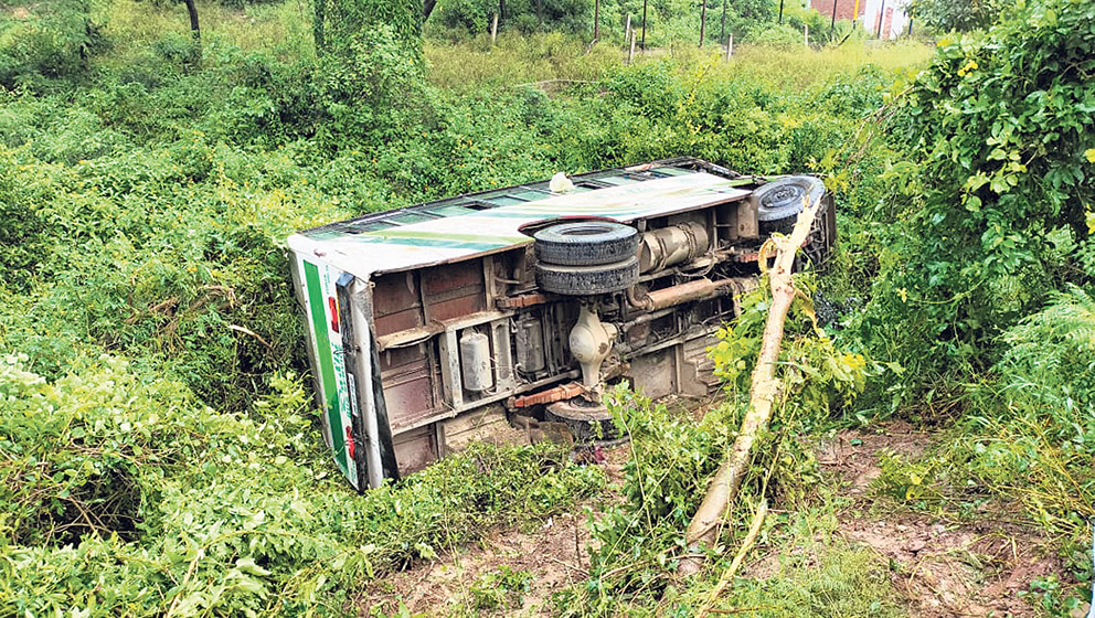 ਖਤਾਨਾਂ ਵਿੱਚ ਬੱਸ ਪਲਟੀ; 13 ਸਵਾਰੀਆਂ ਜ਼ਖ਼ਮੀ