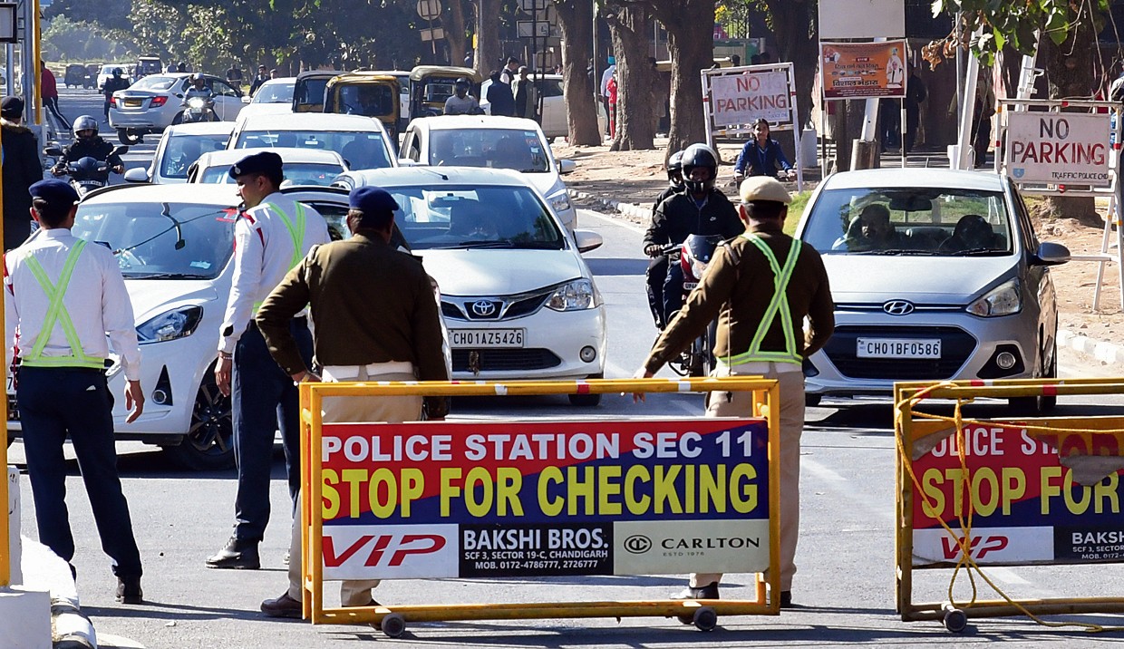 ਪੰਜਾਬ ਤੇ ਹਰਿਆਣਾ ਦੀ ਰਾਜਧਾਨੀ ਚੰਡੀਗੜ੍ਹ ਵਿੱਚ ਪ੍ਰਧਾਨ ਮੰਤਰੀ ਨਰਿੰਦਰ ਮੋਦੀ ਤੇ ਕੇਂਦਰੀ ਗ੍ਰਹਿ ਮੰਤਰੀ ਅਮਿਤ ਸ਼ਾਹ ਦੀ ਫੇਰੀ ਦੇ ਮੱਦੇਨਜ਼ਰ ਚੰਡੀਗੜ੍ਹ ਪੁਲੀਸ ਨੇ ਸੁਰੱਖਿਆ ਪ੍ਰਬੰਧ ਪੁਖਤਾ ਕੀਤੇ ਹੋਏ ਹਨ। ਇਸ ਦੌਰਾਨ ਪੁਲੀਸ ਨੇ ਸ਼ਹਿਰ ਦੀਆਂ ਕਈ ਸੜਕਾਂ ਨੂੰ ਕੁਝ ਸਮੇਂ ਲਈ ਬੰਦ ਕਰ ਦਿੱਤਾ ਸੀ ਜਿਸ ਕਰ ਕੇ ਲੋਕਾਂ ਨੂੰ ਪ੍ਰੇਸ਼ਾਨੀਆਂ ਦਾ ਸਾਹਮਣਾ ਕਰਨਾ ਪਿਆ ਹੈ। ਪ੍ਰਾਪਤ ਜਾਣਕਾਰੀ ਅਨੁਸਾਰ ਅੱਜ ਪ੍ਰਧਾਨ ਮੰਤਰੀ ਦੀ ਆਮਦ ’ਤੇ ਚੰਡੀਗੜ੍ਹ ਪੁਲੀਸ ਨੇ ਪੀਜੀਆਈ ਤੋਂ ਨਵਾਂ ਗਰਾਉਂ ਜਾਣ ਵਾਲੀ ਸੜਕ ਨੂੰ ਵੀ ਕੁਝ ਸਮੇਂ ਲਈ ਬੰਦ ਕਰ ਦਿੱਤਾ ਹੈ। ਇਸ ਦੌਰਾਨ ਨਵਾਂ ਗਰਾਉਂ ਤੋਂ ਪੀਜੀਆਈ ਆਉਣ ਵਾਲੇ ਅਤੇ ਪੀਜੀਆਈ ਤੋਂ ਨਵਾਂ ਗਰਾਉਂ ਜਾਣ ਵਾਲੇ ਲੋਕਾਂ ਨੂੰ ਖੱਜਲ-ਖੁਆਰ ਹੋਣਾ ਪਿਆ। ਇਸ ਤੋਂ ਇਲਾਵਾ ਚੰਡੀਗੜ੍ਹ ਪੁਲੀਸ ਵੱਲੋਂ ਅੱਜ ਵੀ ਸ਼ਹਿਰ ਵਿੱਚ ਸੁਰੱਖਿਆ ਦੇ ਸਖ਼ਤ ਪ੍ਰਬੰਧ ਕੀਤੇ ਗਏ। ਪੁਲੀਸ ਨੇ ਸ਼ਹਿਰ ਵਿੱਚ ਵੱਖ-ਵੱਖ ਥਾਵਾਂ ’ਤੇ ਨਾਕਾਬੰਦੀ ਕੀਤੀ ਅਤੇ ਵਾਹਨਾਂ ਦੀ ਚੈਕਿੰਗ ਕੀਤੀ। ਜ਼ਿਕਰਯੋਗ ਹੈ ਕਿ ਚੰਡੀਗੜ੍ਹ ਪੁਲੀਸ ਨੇ ਪਹਿਲਾਂ ਹੀ ਟਰੈਫਿਕ ਐਡਵਾਈਜ਼ਰੀ ਜਾਰੀ ਕਰਦੇ ਹੋਏ ਅੱਜ ਸਵੇਰੇ 11 ਵਜੇ ਤੋਂ ਬਾਅਦ ਦੁਪਹਿਰ 3 ਵਜੇ ਤੱਕ ਕੁਝ ਸੜਕਾਂ ’ਤੇ ਆਵਾਜਾਈ ’ਤੇ ਪਾਬੰਦੀ ਲਗਾ ਦਿੱਤੀ ਸੀ।