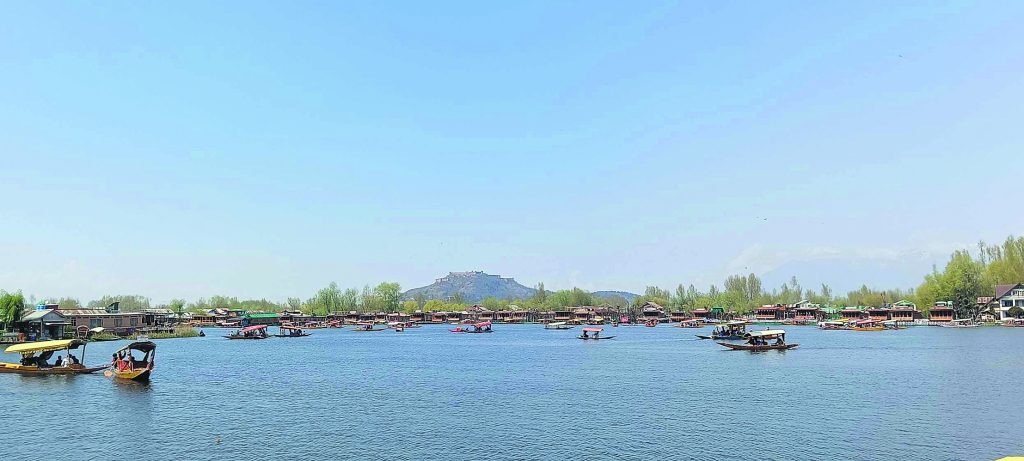 ਚੰਡੀਗੜ੍ਹ ਤੋਂ ਸ੍ਰੀਨਗਰ ਦਾ 567 ਕਿਲੋਮੀਟਰ ਰਸਤਾ ਕਾਰ ਰਾਹੀਂ 13 ਘੰਟਿਆਂ ਵਿੱਚ ਤੈਅ ਕੀਤਾ ਜਾ ਸਕਦਾ ਹੈ। 416 ਕਿਲੋਮੀਟਰ ਦਾ ਹਵਾਈ ਸਫ਼ਰ ਮਹਿਜ਼ ਡੇਢ ਘੰਟੇ ਵਿੱਚ ਤੈਅ ਹੋ ਜਾਂਦਾ ਹੈ। ਅਸੀਂ ਚੰਡੀਗੜ੍ਹ ਤੋਂ ਸਵੇਰੇ ਹੀ ਹਵਾਈ ਰਸਤੇ ਦੁਪਹਿਰ ਤੋਂ ਪਹਿਲਾਂ ਸ੍ਰੀਨਗਰ ਪਹੁੰਚ ਗਏ। ਹਵਾਈ ਜਹਾਜ਼ ਦੀ ਖਿੜਕੀ ਵਿੱਚੋਂ ਤੱਕਦਿਆਂ ਬਰਫ਼ ਲੱਦੀਆਂ ਦੁੱਧ ਚਿੱਟੀਆਂ ਪਹਾੜੀਆਂ ਦਾ ਦ੍ਰਿਸ਼ ਮਨ ਨੂੰ ਮੋਹ ਲੈਂਦਾ ਹੈ। ਦੂਰ-ਦੁਰਾਡੇ ਦੀ ਨਵੀਂ ਥਾਂ ’ਤੇ ਜਾ ਕੇ ਉੱਥੋਂ ਦੀ ਵੱਖਰੀ ਬਨਸਪਤੀ ਅਤੇ ਵੱਖਰੇ ਸੱਭਿਆਚਾਰ ਕਾਰਨ ਮਨ ’ਚ ਨਵਾਂ ਅਹਿਸਾਸ ਜਾਗਦਾ ਹੈ। ਪਹਿਲੀ ਰਾਤ ਡਲ ਝੀਲ ’ਤੇ ਸਥਿਤ ਹਾਊਸਬੋਟ ਵਿੱਚ ਗੁਜ਼ਾਰਨੀ ਸੀ। ਹਵਾਈ ਅੱਡੇ ਤੋਂ ਸਿੱਧਾ ਡਲ ਝੀਲ ਦੇ ਘਾਟ ਨੰਬਰ 13 ਉੱਤੇ ਪਹੁੰਚ ਗਏ। ਸ਼ਿਕਾਰੇ ਵਿੱਚ ਸਾਮਾਨ ਰੱਖਣ ਉਪਰੰਤ ਸ਼ਿਕਾਰਾ ਸਾਨੂੰ ਝੀਲ ਦੇ ਦੂਜੇ ਪਾਸੇ ਕਿਨਾਰੇ ’ਤੇ ਬਣੇ ਹਾਊਸਬੋਟ ਵਿੱਚ ਲੈ ਗਿਆ। ਸ਼ਿਕਾਰਾ ਡਲ ਝੀਲ ਦੇ ਪਾਣੀ ਉੱਤੇ ਚੱਲਿਆ ਤਾਂ ਪਿਕਨਿਕ ਵਰਗਾ ਆਨੰਦ ਆਇਆ। ਹਾਊਸਬੋਟ ਵਿੱਚ ਜਾਣ ਤੋਂ ਪਹਿਲਾਂ ਸ੍ਰੀਨਗਰ ਅਤੇ ਡਲ ਝੀਲ ਬਾਰੇ ਕੁਝ ਜਾਣਕਾਰੀ ਟੂਰ ਦੇ ਮਜ਼ੇ ਵਿੱਚ ਵਾਧਾ ਕਰਦੀ ਹੈ। ਪਹਿਲੀ ਗੱਲ ਤਾਂ ਇਸ ਦੇ ਨਾਂ ਸਬੰਧੀ ਹੀ ਹੈ। ਕਸ਼ਮੀਰੀ ਭਾਸ਼ਾ ਵਿੱਚ ਡਲ ਦਾ ਅਰਥ ਹੀ ਝੀਲ ਹੁੰਦਾ ਹੈ। ਇਸ ਤਰ੍ਹਾਂ ‘ਡਲ ਝੀਲ’ ਸਹੂਲਤ ਲਈ ਬਣਿਆ ਨਾਂ ਬਣ ਗਿਆ ਹੈ। ਕਸ਼ਮੀਰ ਦੇ ਕੇਂਦਰ ਵਿੱਚ ਵਸਿਆ ਸ੍ਰੀਨਗਰ ਕੇਂਦਰੀ ਸਾਸ਼ਤ ਪ੍ਰਦੇਸ਼ ਜੰਮੂ ਕਸ਼ਮੀਰ ਦੀ ਗਰਮੀਆਂ ਦੀ ਰਾਜਧਾਨੀ ਹੈ। ਸ੍ਰੀਨਗਰ ਜਿਹਲਮ ਦਰਿਆ ਦੇ ਕਿਨਾਰਿਆਂ ਦੇ ਦੋਵਾਂ ਪਾਸਿਆਂ ਉੱਤੇ ਵਸਿਆ ਸ਼ਹਿਰ ਹੈ ਜਿਹੜਾ ਚਾਰ ਜ਼ਿਲ੍ਹਿਆਂ ਅਤੇ ਲੱਦਾਖ ਨਾਲ ਘਿਰਿਆ ਹੋਇਆ ਹੈ। ਸਮੁੰਦਰ ਤਲ ਤੋਂ ਇਸ ਦੀ ਉਚਾਈ 1585 ਮੀਟਰ ਹੈ। ਇਸ ਦੇ ਕਿਨਾਰੇ ਉੱਤੇ ਹੀ ਪ੍ਰਸਿੱਧ ਸ਼ਾਲੀਮਾਰ ਅਤੇ ਨਿਸ਼ਾਤ ਬਾਗ਼ ਸਥਿਤ ਹਨ। ਇਨ੍ਹਾਂ ਦੇ ਇੱਕ ਪਾਸੇ ਪਹਾੜ ਹਨ ਤੇ ਦੂਜੇ ਪਾਸੇ ਡਲ ਝੀਲ। ਇਹ ਇਨ੍ਹਾਂ ਬਾਗ਼ਾਂ ਨੂੰ ਨਿਵੇਕਲੀ ਦਿੱਖ ਪ੍ਰਦਾਨ ਕਰਦੇ ਹਨ। ਝੀਲ ਦੇ ਕਿਨਾਰੇ ਦੀ ਲੰਬਾਈ 15.5 ਕਿਲੋਮੀਟਰ ਹੈ। ਝੀਲ ਵਪਾਰਕ ਕਾਰੋਬਾਰ, ਮੱਛੀ ਫੜਨ ਅਤੇ ਪਾਣੀ ਦੇ ਪੌਦਿਆਂ ਦੀ ਖੇਤੀ ਦਾ ਵੀ ਵੱਡਾ ਸਾਧਨ ਹੈ। ਇਸ ਦਾ ਖੇਤਰਫਲ ਤਕਰੀਬਨ 18 ਵਰਗ ਕਿਲੋਮੀਟਰ ਹੈ। ਹਾਊਸਬੋਟ ਵਿੱਚ ਜਾ ਕੇ ਝੀਲ ਦਾ ਨਜ਼ਾਰਾ ਇਉਂ ਲੱਗਦਾ ਸੀ ਜਿਵੇਂ ਸ਼ਿਕਾਰਿਆਂ ਦਾ ਮੇਲਾ ਲੱਗਿਆ ਹੋਵੇ। ਸ਼ਿਕਾਰੇ ਵਿੱਚ ਕੋਈ ਕਸ਼ਮੀਰੀ ਕਾਹਵਾ ਪਿਲਾ ਰਿਹਾ ਸੀ, ਕੋਈ ਸ਼ਿੰਗਾਰ ਦਾ ਸਾਮਾਨ ਵੇਚ ਰਿਹਾ ਸੀ। ਹਾਊਸਬੋਟ ਮੁਕੰਮਲ ਰੂਪ ਵਿੱਚ ਲੱਕੜ ਦੀ ਬਣੀ ਹੁੰਦੀ ਹੈ ਅਤੇ ਸਾਰੀ ਉੱਤੇ ਕਾਲੀਨ ਵਿਛੇ ਹੁੰਦੇ ਹਨ। ਕਮਰੇ ਵਿੱਚ ਬੈੱਡ ਸਜਾਏ ਹੋਏ ਸਨ। ਕਮਰੇ ਸਹੂਲਤਾਂ ਨਾਲ ਭਰਪੂਰ ਹਨ। ਜਦੋਂ ਕੋਈ ਤੁਰਦਾ ਹੈ ਤਾਂ ਠੱਕ ਠੱਕ ਦੀ ਆਵਾਜ਼ ਆਉਂਦੀ ਹੈ। ਥੋੜ੍ਹਾ ਆਰਾਮ ਕਰਨ ਪਿੱਛੋਂ ਸ਼ਿਕਾਰੇ ਵਾਲਾ ਸੱਦਾ ਦੇ ਰਿਹਾ ਸੀ ਕਿ ਛੇਤੀ ਕਰੋ! ਤੁਹਾਨੂੰ ਝੀਲ ਵਿੱਚ ਘੁਮਾ ਕੇ ਲਿਆਉਣਾ ਹੈ।