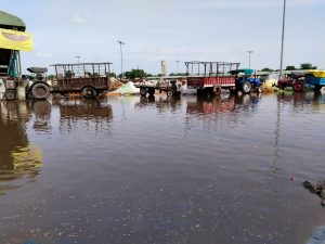 ਰਾਜ ਵਿੱਚ ਸ਼ੈਲਰ ਮਾਲਕਾਂ ਦੀ ਹੜਤਾਲ ਕਾਰਨ ਕਈ ਦਿਨਾਂ ਤੋਂ ਲਿਫਟਿੰਗ ਪੂਰੀ ਤਰ੍ਹਾਂ ਠੱਪ ਹੈ, ਜਿਸ ਕਾਰਨ ਮੰਡੀਆਂ ਵਿੱਚ ਝੋਨੇ ਦੀਆਂ ਭਰੀਆਂ ਬੋਰੀਆਂ ਦੇ ਅੰਬਾਰ ਲੱਗੇ ਹੋਏ ਹਨ। ਮੌਸਮ ਵਿਭਾਗ ਵੱਲੋਂ ਮੀਂਹ ਦੀ ਕੀਤੀ ਪੇਸ਼ੀਨਗੋਈ ਦੇ ਕਾਰਨ ਭਾਵੇਂ ਖਰੀਦ ਏਜੰਸੀਆਂ ਨੇ ਕਈ ਥਾਵਾਂ ’ਤੇ ਮੰਡੀਆਂ ’ਚ ਝੋਨਾ ਤਰਪਾਲਾਂ ਨਾਲ ਢੱਕ ਦਿੱਤਾ ਸੀ ਪਰ ਅੱਜ ਮੀਂਹ ਦੇ ਨਾਲ ਚੱਲੀਆਂ ਤੇਜ਼ ਹਵਾਵਾਂ ਨੇ ਪੱਲੀਆਂ ਉਡਾ ਦਿੱਤੀਆਂ, ਜਿਸ ਦੌਰਾਨ ਮੰਡੀਆਂ ’ਚ ਪਈ ਜੀਰੀ ਦੀ ਫ਼ਸਲ ਮੀਹ ਨਾਲ ਭਿੱਜ ਗਈ। ਇਸ ਤੋਂ ਇਲਾਵਾ ਮੰਡੀ ਵਿੱਚ ਵਿਕਣ ਲਈ ਆਈ ਜੀਰੀ ਦੇ ਹੇਠਾਂ ਵੀ ਪਾਣੀ ਵੜ ਗਿਆ, ਜਿਸ ਕਾਰਨ ਕਿਸਾਨ ਤੇ ਮਜ਼ਦੂਰ ਮੰਡੀਆਂ ਵਿੱਚੋਂ ਪਾਣੀ ਕੱਢਦੇ ਰਹੇ।