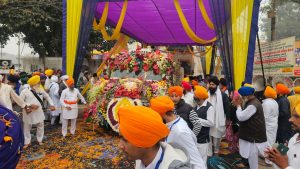 ਵੀਰਵਾਰ ਸਵੇਰੇ ਗੁਰਦੁਆਰਾ ਸੰਤ ਘਾਟ ਤੋਂ ਸ੍ਰੀ ਗੁਰੂ ਗ੍ਰੰਥ ਸਾਹਿਬ ਜੀ ਦੀ ਛਤਰ ਛਾਇਆ ਹੇਠ ਅਤੇ ਪੰਜਾਂ ਪਿਆਰਿਆਂ ਦੀ ਅਗਵਾਈ ਵਿੱਚ ਨਗਰ ਕੀਰਤਨ ਆਰੰਭ ਹੋਇਆ। ਜਿਸ ਪਲਾਕੀ ਸਾਹਿਬ ਵਿੱਚ ਸ੍ਰੀ ਗੁਰੂ ਗ੍ਰੰਥ ਸਾਹਿਬ ਜੀ ਦਾ ਸਰੂਪ ਬਿਰਾਜਮਾਨ ਹਨ, ਉਸ ਨੂੰ ਫੁੱਲਾਂ ਨਾਲ ਬਹੁਤ ਹੀ ਖੂਬਸੂਰਤ ਢੰਗ ਨਾਲ ਸਜਾਇਆ ਗਿਆ ਹੈ।