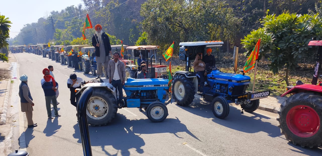 ਸੰਯੁਕਤ ਕਿਸਾਨ ਮੋਰਚਾ (ਐੱਸਕੇਐੱਮ), ਸੰਯੁਕਤ ਕਿਸਾਨ ਮੋਰਚਾ (ਗੈਰ-ਸਿਆਸੀ) ਅਤੇ ਕਿਸਾਨ ਮਜ਼ਦੂਰ ਮੋਰਚਾ ਵੱਲੋਂ ਐੱਮਐੱਸਪੀ ’ਤੇ ਖਰੀਦ ਦੀ ਕਾਨੂੰਨੀ ਗਾਰੰਟੀ, ਨਵਾਂ ਖੇਤੀ ਮੰਡੀਕਰਨ ਨੀਤੀ ਖਰੜਾ ਰੱਦ ਕੀਤੇ ਜਾਣ ਸਣੇ ਹੋਰਨਾਂ ਮੰਗਾਂ ਨੂੰ ਲੈ ਕੇ ਅੱਜ ਦੇਸ਼ ਦੇ 76ਵੇਂ ਗਣਤੰਤਰ ਦਿਵਸ ਮੌਕੇ ਪੰਜਾਬ, ਹਰਿਆਣਾ, ਯੂਪੀ ਤੇ ਦੇਸ਼ ਦੇ ਹੋਰਨਾਂ ਹਿੱਸਿਆਂ ਵਿਚ ਟਰੈਕਟਰ ਮਾਰਚ ਕੱਢੇ ਗਏ।