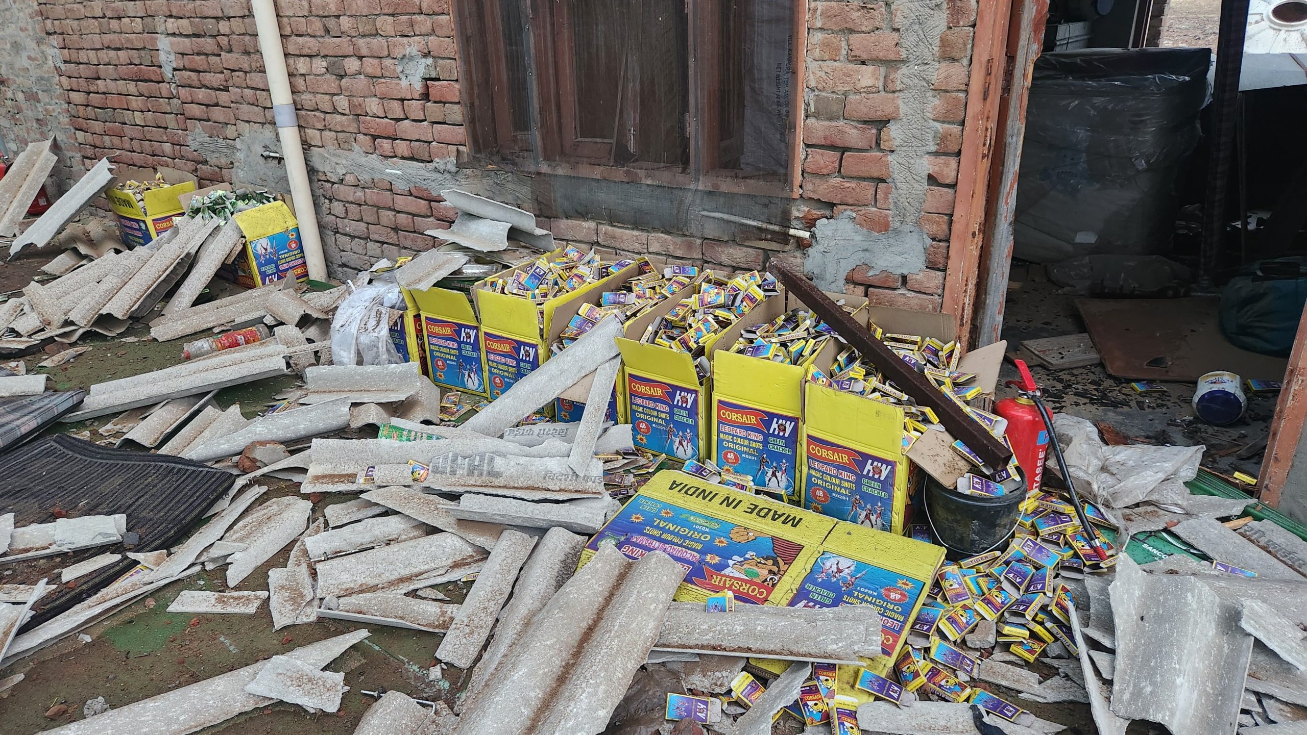 ਮੌਕੇ ਤੋਂ ਕੌਰਸੈਰ ਕੰਪਨੀ ਦੇ ਬਕਸਿਆਂ ਵਿਚ ਬਣੇ ਹੋਏ ਪਟਾਕੇ ਪਏ ਸਨ। ਜਦਕਿ ਇਸੇ ਕੰਪਨੀ ਦੇ ਖਾਲੀ ਬਕਸਿਆਂ ਦਾ ਲੱਦਿਆ ਹਰਿਆਣਾ ਨੰਬਰ ਦਾ ਇੱਕ ਛੋਟਾ ਹਾਥੀ ਵੀ ਬਰਾਮਦ ਹੋਇਆ ਹੈ। ਧਮਾਕੇ ਦੀ ਤੇਜ਼ ਆਵਾਜ਼ ਕਈ-ਕਈ ਕਿਲੋਮੀਟਰ ਤੱਕ ਸੁਣਾਈ ਦਿੱਤੀ।