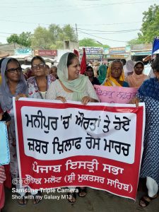 ਰੋਸ ਰੈਲੀ ਨੂੰ ਪੰਜਾਬ ਇਸਤਰੀ ਸਭਾ ਦੇ ਆਗੂ ਸੁਦੇਸ਼ ਕੁਮਾਰੀ, ਪ੍ਰੇਮ ਲਤਾ, ਪ੍ਰਵੀਨ ਕੁਮਾਰੀ, ਸੀਪੀਆਈ ਦੇ ਬਲਾਕ ਸਕੱਤਰ ਸੁਦਰਸ਼ਨ ਜੱਗਾ, ਪੈਨਸ਼ਨਰ ਐਸੋਸੀਏਸ਼ਨ ਦੇ ਮਹਾਵੀਰ ਪ੍ਰਸਾਦ ਸ਼ਰਮਾ, ਟਰੇਡ ਯੂਨੀਅਨ ਆਗੂ ਹਿੰਮਤ ਸਿੰਘ ਕੁਲਵਿੰਦਰ ਸਿੰਘ ਅਤੇ ਸੇਵਾਮੁਕਤ ਹੈੱਡਮਾਸਟਰ ਰਕੇਸ਼ ਜੈਨ ਤੋਂ ਇਲਵਾ ਏਆਈਐੱਸਐੱਫ ਆਗੂ ਗੁਰਬਿੰਦਰ ਸਿੰਘ, ਕੁੱਲ ਹਿੰਦ ਕਿਸਾਨ ਸਭਾ ਦੇ ਗੁਰਪ੍ਰੀਤ ਕਟਿਆਂਵਾਲੀ, ਨਰੇਗਾ ਆਗੂ ਹਰੀ ਰਾਮ ਸ਼ੇਰਗੜ, ਗੁਰਤੇਜ ਬਾਮਅਤੇ ਸਤਪਾਲ ਚੁਰਾਇਆ ਨੇ ਸਬੋਧਨ ਕੀਤਾ। ਬੁਲਾਰਿਆਂ ਨੇ ਮਨੀਪੁਰ ਦੀਆਂ ਸ਼ਰਮਨਾਕ ਹਿੰਸਕ ਅਤੇ ਬਲਾਤਕਾਰ ਦੀਆਂ ਘਟਨਾਵਾਂ ’ਤੇ ਭਾਜਪਾ ਦੀ ਸੂਬਾ ਸਰਕਾਰ ਅਤੇ ਕੇਂਦਰ ਦੀ ਸਖਤ ਅਲੋਚਨਾ ਕੀਤੀ। ਰੈਲੀ ਮਗਰੋਂ ਰੋਸ ਮਾਰਚ ਸਮੇਂ ਸ਼ਹਿਰ ਦੇ ਗਾਂਧੀ ਚੌਕ ਵਿਚ ਮਨੀਪੁਰ ਅਤੇ ਕੇਂਦਰ ਦੀ ਭਾਜਪਾ ਸਰਕਾਰ ਦੀ ਅਰਥੀ ਫੂਕੀ।