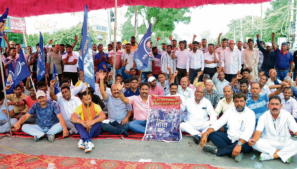 ਅਨੁਸੂਚਿਤ ਜਾਤੀਆਂ ਅਤੇ ਅਨੁਸੂਚਿਤ ਕਬੀਲਿਆਂ ਵਿੱਚ ਵਰਗੀਕਰਨ ਕਰਕੇ ਸੂਬਿਆਂ ਨੂੰ ਰਾਖਵੇਂਕਰਨ ਦਾ ਕੋਟਾ ਵੰਡਣ ਅਤੇ ‘ਕ੍ਰੀਮੀ ਲੇਅਰ’ ਸਬੰਧੀ ਸੁਪਰੀਮ ਕੋਰਟ ਵੱਲੋਂ ਸੁਣਾਏ ਗਏ ਫ਼ੈਸਲੇ ਖ਼ਿਲਾਫ਼ ਆਦਿਵਾਸੀਆਂ ਅਤੇ ਦਲਿਤ ਜਥੇਬੰਦੀਆਂ ਵੱਲੋਂ ਦਿੱਤੇ ਗਏ ਭਾਰਤ ਬੰਦ ਦੇ ਸੱਦੇ ਨੂੰ ਪੰਜਾਬ ਦੇ ਲੁਧਿਆਣਾ, ਪਟਿਆਲਾ, ਸੰਗਰੂਰ ਅਤੇ ਬਾਕੀ ਜ਼ਿਲ੍ਹਿਆਂ ਵਿੱਚ ਅੱਜ ਮੱਠਾ ਹੁੰਗਾਰਾ ਮਿਲਿਆ। ਬਹੁਗਿਣਤੀ ਦਲਿਤ ਵੱਸੋਂ ਵਾਲੇ ਜਲੰਧਰ ਜ਼ਿਲ੍ਹੇ ਵਿੱਚ ਵੀ ਬੰਦ ਨੂੰ ਬਹੁਤਾ ਹੁੰਗਾਰਾ ਨਹੀਂ ਮਿਲਿਆ। ਹਾਲਾਂਕਿ ਬਸਪਾ ਆਗੂਆਂ ਤੇ ਵਰਕਰਾਂ ਨੇ ਸਵੇਰੇ 9 ਵਜੇ ਤੋਂ ਸ਼ਾਮ ਤਿੰਨ ਵਜੇ ਤੱਕ ਰੋਸ ਪ੍ਰਦਰਸ਼ਨ ਕੀਤੇ ਤੇ ਕੁੱਝ ਇਲਾਕਿਆਂ ’ਚ ਦੁਕਾਨਾਂ ਬੰਦ ਕਰਵਾਈਆਂ ਗਈਆਂ। ਉਧਰ ਵਾਲਮੀਕਿ ਭਾਈਚਾਰੇ ਨੇ ਸੁਪਰੀਮ ਕੋਰਟ ਦੇ ਫ਼ੈਸਲੇ ਦਾ ਡਟ ਕੇ ਸਮਰਥਨ ਕੀਤਾ। ਉਨ੍ਹਾਂ ਜਲੰਧਰ ਦੇ ਨਗਰ ਨਿਗਮ ਚੌਕ ਵਿੱਚ ਲੱਡੂ ਵੀ ਵੰਡੇ। ਬਸਪਾ ਵਰਕਰਾਂ ਨੇ ਜਲੰਧਰ ਦੇ ਰਾਮਾਂ ਮੰਡੀ ਚੌਕ, ਪਠਾਨਕੋਟ ਚੌਕ, ਗੁਰੂ ਰਵਿਦਾਸ ਚੌਕ, ਵਡਾਲਾ ਚੌਕ ਤੇ ਹੋਰ ਥਾਵਾਂ ’ਤੇ ਰੋਸ ਪ੍ਰਦਰਸ਼ਨ ਕਰਦਿਆਂ ਧਰਨੇ ਦਿੱਤੇ ਤੇ ਦੁਕਾਨਾਂ ਬੰਦ ਕਰਵਾਈਆਂ। ਉਨ੍ਹਾਂ ਕਿਸੇ ਨੂੰ ਵੀ ਕਾਰੋਬਾਰ ਜਬਰੀ ਬੰਦ ਲਈ ਮਜਬੂਰ ਨਹੀਂ ਕੀਤਾ ਅਤੇ ਆਪਣੇ ਆਪ ਨੂੰ ਖਾਸ ਥਾਵਾਂ ’ਤੇ ਪ੍ਰਦਰਸ਼ਨਾਂ ਤੱਕ ਹੀ ਸੀਮਤ ਰੱਖਿਆ। ਇਨ੍ਹਾਂ ਮੁਜ਼ਾਹਰਿਆਂ ਵਿੱਚ ਆਦਿ-ਧਰਮੀ/ਰਵਿਦਾਸ ਭਾਈਚਾਰੇ ਦੇ ਮੈਂਬਰਾਂ ਨੇ ਵੱਡੀ ਗਿਣਤੀ ਵਿੱਚ ਸ਼ਮੂਲੀਅਤ ਕੀਤੀ।