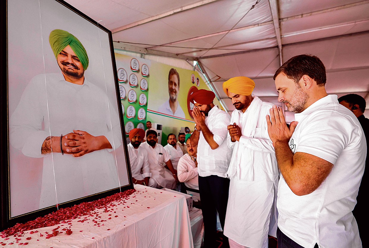 ਮੂਸੇਵਾਲਾ ਦੀ ਦੂਜੀ ਬਰਸੀ ਮੌਕੇ ਰਾਹੁਲ ਗਾਂਧੀ, ਰਾਜਾ ਵੜਿੰਗ ਅਤੇ ਬਲਕੌਰ ਸਿੰਘ ਨੇ ਗਾਇਕ ਦੀ ਸਟੇਜ ਉਪਰ ਰੱਖੀ ਆਦਮਕੱਦ ਤਸਵੀਰ ਉਪਰ ਫੁੱਲ ਭੇਟ ਕਰਕੇ ਸ਼ਰਧਾਂਜਲੀ ਦਿੱਤੀ। ਇਸ ਦੌਰਾਨ ਦੋਹਾਂ ’ਚ ਸਿੱਧੂ ਮੂਸੇਵਾਲਾ ਦੀ ਹੱਤਿਆ ਨੂੰ ਲੈ ਕੇ ਚਰਚਾ ਹੋਈ। ਬਲਕੌਰ ਸਿੰਘ ਨੇ ਇਨਸਾਫ਼ ਦੀ ਮੰਗ ਕੀਤੀ ਤਾਂ ਰਾਹੁਲ ਗਾਂਧੀ ਨੇ ਸਪੱਸ਼ਟ ਤੌਰ ’ਤੇ ਕਿਹਾ ਕਿ ਉਨ੍ਹਾਂ ਦੀ ਸਰਕਾਰ ਆਉਣ ’ਤੇ ਪਰਿਵਾਰ ਨੂੰ ਇਨਸਾਫ਼ ਦਿਵਾਇਆ ਜਾਵੇਗਾ।