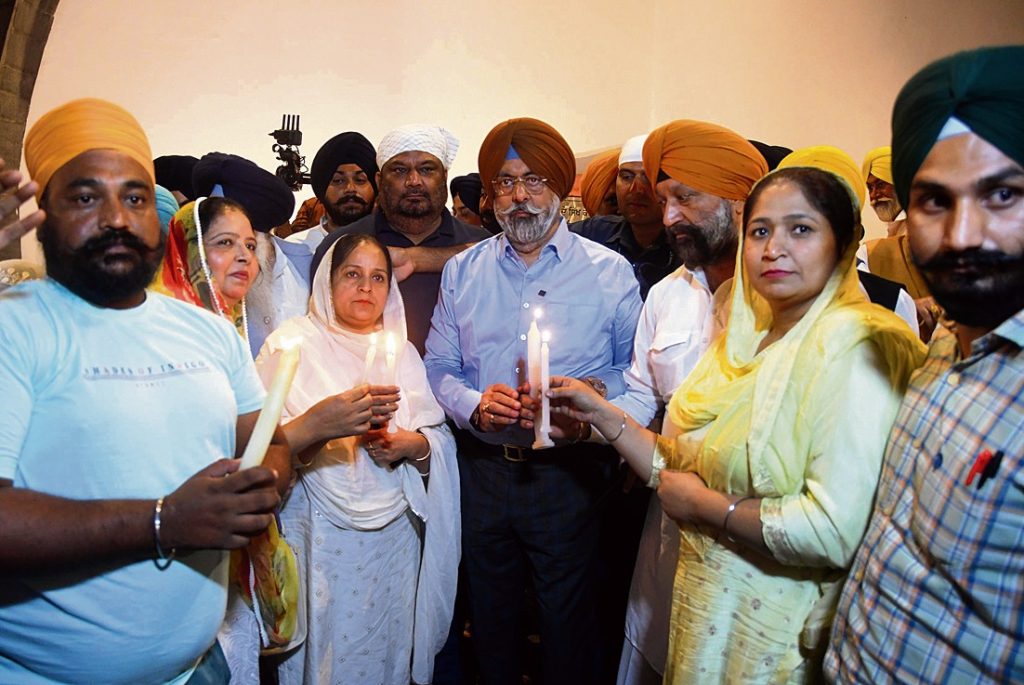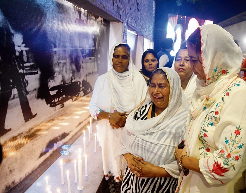 ਨਵੀਂ ਦਿੱਲੀ ਸਥਿਤ ਗੁਰਦੁਆਰਾ ਰਕਾਬਗੰਜ ਸਾਹਿਬ ’ਚ ਐਤਵਾਰ ਨੂੰ ‘ਸੱਚ ਦੀ ਦੀਵਾਰ’ ’ਤੇ 1984 ਦੇ ਕਤਲੇਆਮ ’ਚ ਮਾਰੇ ਗਏ ਸਿੱਖਾਂ ਨੂੰ ਸ਼ਰਧਾਂਜਲੀ ਦਿੰਦੇ ਹੋਏ ਪੀੜਤ ਪਰਿਵਾਰ। -ਫੋਟੋ: ਮਾਨਸ ਰੰਜਨ ਭੂਈ