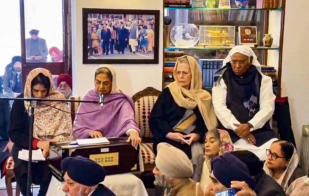 ਇੱਥੇ ਗੁਰਦੁਆਰਾ ਰਕਾਬਗੰਜ ’ਚ ਸਾਬਕਾ ਪ੍ਰਧਾਨ ਮੰਤਰੀ ਡਾ. ਮਨਮੋਹਨ ਸਿੰਘ ਨਮਿਤ ਅੰਤਿਮ ਅਰਦਾਸ ਅਤੇ ਕੀਰਤਨ ਸਮਾਗਮ ਵਿੱਚ ਪਰਿਵਾਰਕ ਮੈਂਬਰਾਂ ਤੋਂ ਇਲਾਵਾ ਕਾਂਗਰਸ ਪ੍ਰਧਾਨ ਮਲਿਕਾਰਜੁਨ ਖੜਗੇ, ਕਾਂਗਰਸ ਸੰਸਦੀ ਦਲ ਦੀ ਚੇਅਰਪਰਸਨ ਸੋਨੀਆ ਗਾਂਧੀ, ਪੰਜਾਬ ਦੇ ਮੁੱਖ ਮੰਤਰੀ ਭਗਵੰਤ ਮਾਨ ਅਤੇ ਹੋਰ ਆਗੂਆਂ ਨੇ ਸ਼ਮੂਲੀਅਤ ਕੀਤੀ। 26 ਦਸੰਬਰ ਨੂੰ 92 ਸਾਲ ਦੀ ਉਮਰ ਵਿੱਚ ਮਨਮੋਹਨ ਸਿੰਘ ਦਾ ਦੇਹਾਂਤ ਹੋ ਗਿਆ ਸੀ।