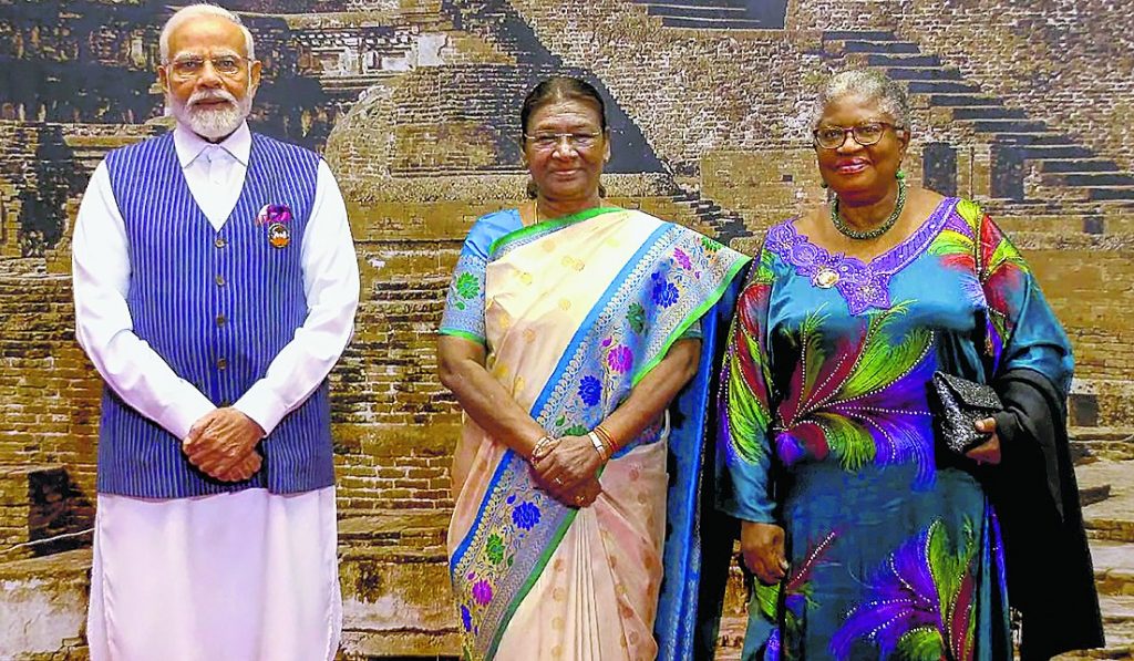 ਨਾਲੰਦਾ ਯੂਨੀਵਰਸਿਟੀ ਦੇ ਪੁਰਾਤਨ ਅੰਸ਼ ਯੂਨੈਸਕੋ ਦੀ ਵਿਸ਼ਵ ਧਰੋਹਰ ਦੀ ਸੂਚੀ ਵਿੱਚ ਸ਼ਾਮਲ ਹਨ। ਇਹ ਦੁਨੀਆ ਦੀਆਂ ਸਭ ਤੋਂ ਪੁਰਾਣੀਆਂ ਯੂਨੀਵਰਸਿਟੀਆਂ ’ਚੋਂ ਇਕ ਸੀ। ਰਾਸ਼ਟਰਪਤੀ ਮੁਰਮੂ ਭਾਰਤ ਮੰਡਪਮ ਵਿੱਚ ਜੀ20 ਆਗੂਆਂ, ਕੌਮਾਂਤਰੀ ਡੈਲੀਗੇਟਾਂ ਅਤੇ ਹੋਰ ਸ਼ਖ਼ਸੀਅਤਾਂ ਲਈ ਰਸਮੀ ਰਾਤਰੀ ਭੋਜ ਦੀ ਮੇਜ਼ਬਾਨੀ ਕਰ ਰਹੇ ਸਨ। ਨਵੇਂ ਬਣੇ ਕੌਮਾਂਤਰੀ ਸੰਮੇਲਨ ਤੇ ਪ੍ਰਦਰਸ਼ਨੀ ਕੇਂਦਰ ਅਤੇ ਇਸ ਤੋਂ ਬਾਅਦ ਹਰੇ-ਭਰੇ ਲਾਅਨ ਰਾਤ ਵਿੱਚ ਰੰਗੀਨ ਰੋਸ਼ਨੀ ਨਾਲ ਰੁਸਨਾਉਂਦੇ ਨਜ਼ਰ ਆਏ ਅਤੇ ਇਸ ਦੇ ਫੁਹਾਰਿਆਂ ਤੇ ਅਤਿ-ਆਧੁਨਿਕ ਇਮਾਰਤ ਦੇ ਸਾਹਮਣੇ ਰੱਖੀ ‘ਨਟਰਾਜ’ ਦੀ ਮੂਰਤੀ ਨੇ ਰਾਤਰੀ ਭੋਜ ਵਾਲੀ ਜਗ੍ਹਾ ਨੂੰ ਹੋਰ ਵੀ ਸੁੰਦਰ ਬਣਾ ਦਿੱਤਾ। ਪਹਿਲਾਂ ਪਹੁੰਚਣ ਵਾਲਿਆਂ ਵਿੱਚ ਸੰਯੁਕਤ ਰਾਸ਼ਟਰ ਦੇ ਜਨਰਲ ਸਕੱਤਰ ਅੰਤੋਨੀਓ ਗੁਟੇਰੇਜ਼, ਭਾਰਤੀ ਰਵਾਇਤੀ ਪੁਸ਼ਾਕ ਸਲਵਾਰ-ਕੁੜਤਾ ਪਹਿਨੇ ਹੋਏ ਕੌਮਾਂਤਰੀ ਮੁਦਰਾ ਫੰਡ (ਆਈਐੱਮਐੱਫ) ਦੀ ਪ੍ਰਬੰਧ ਨਿਰਦੇਸ਼ਕ ਤੇ ਚੇਅਰਮੈਨ ਕ੍ਰਿਸਟਲੀਨਾ ਜੌਰਜੀਵਾ, ਵਿਸ਼ਵ ਬੈਂਕ ਦੇ ਪ੍ਰਧਾਨ ਅਜੈ ਬੰਗਾ ਅਤੇ ਉਨ੍ਹਾਂ ਦੀ ਪਤਨੀ ਰਿਤੂ ਬੰਗਾ ਤੇ ਬੰਗਲਾਦੇਸ਼ ਦੀ ਪ੍ਰਧਾਨ ਮੰਤਰੀ ਸ਼ੇਖ ਹਸੀਨਾ ਪ੍ਰਗਤੀ ਮੈਦਾਨ ਵਿੱਚ ਸ਼ਾਮਲ ਸਨ। ਜੀ20 ਸੰਮੇਲਨ ਸ਼ਨਿਚਰਵਾਰ ਨੂੰ ਭਾਰਤ ਮੰਡਪਮ ਵਿੱਚ ਸ਼ੁਰੂ ਹੋਇਆ ਅਤੇ ਇਹ ਐਤਵਾਰ ਨੂੰ ਸਮਾਪਤ ਹੋਵੇਗਾ।ਇਸ ਦੌਰਾਨ ਰਾਸ਼ਟਰਪਤੀ ਮੁਰਮੂ ਅਤੇ ਪ੍ਰਧਾਨ ਮੰਤਰੀ ਮੋਦੀ ਵੱਲੋਂ ਅਮਰੀਕੀ ਰਾਸ਼ਟਰਪਤੀ ਜੋਅ ਬਾਇਡਨ ਨੇ ਮੰਚ ’ਤੇ ਇਕ-ਦੂਜੇ ਨੂੰ ਸ਼ੁਭਕਾਮਨਾਵਾਂ ਦਿੱਤੀਆਂ। ਇਸ ਦੌਰਾਨ ਮਹਿਮਾਨਾਂ ਨੂੰ ਵਿਭਿੰਨ ਰਸੋਈ ਪਰੰਪਰਾ ਦਰਸਾਉਂਦੇ ਵੱਖ-ਵੱਖ ਤਰ੍ਹਾਂ ਦੇ ਪਕਵਾਨ ਵਰਤਾਏ ਗਏ।