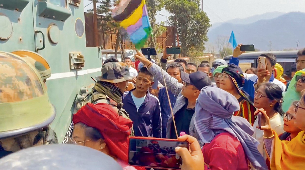 ਪੁਲੀਸ ਤੇ ਮੁਜ਼ਾਹਰਾਕਾਰੀਆਂ ਦੇ ਟਕਰਾਅ ’ਚ ਕਈ ਜ਼ਖ਼ਮੀ; ਸੂਬੇ ਭਰ ਵਿਚ 8 ਮਾਰਚ ਤੋਂ ਆਜ਼ਾਦਾਨਾ ਆਵਾਜਾਈ ਦੀਆਂ ਕੇਂਦਰੀ ਗ੍ਰਹਿ ਮੰਤਰੀ ਵੱਲੋਂ ਜਾਰੀ ਹਦਾਇਤਾਂ ਲਾਗੂ ਕਰਾਉਣ ਲਈ ਮਾਰਚ ਕਰ ਰਿਹਾ ਸੀ ਮੈਤੇਈ ਸੰਗਠਨ