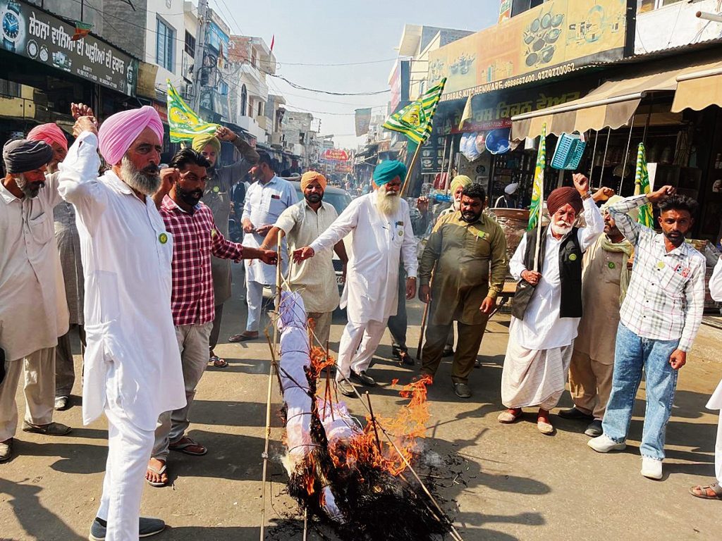 ਕਿਸਾਨਾਂ ਵੱਲੋਂ ਸੂਬਾ ਸਰਕਾਰ ਖ਼ਿਲਾਫ਼ ਅਰਥੀ ਫੂਕ ਮੁਜ਼ਾਹਰੇ