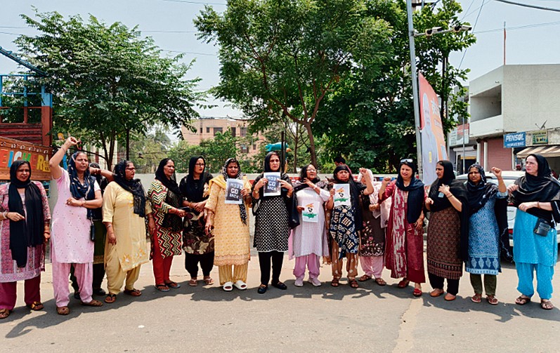 ਪਟਿਆਲਾ (ਗੁਰਨਾਮ ਸਿੰਘ ਅਕੀਦਾ): ਇੱਥੇ ਅੱਜ ਪੰਜਾਬ ਦੀ ਮਹਿਲਾ ਕਾਂਗਰਸ ਨੇ ਪ੍ਰਧਾਨ ਮੰਤਰੀ ਨਰਿੰਦਰ ਮੋਦੀ ਦੇ ਪਟਿਆਲਾ ਫੇਰੀ ਦਾ ਵਿਰੋਧ ਕਰਦਿਆਂ ਜਿਉਂ ਹੀ ‘ਨਰਿੰਦਰ ਮੋਦੀ ਗੋ ਬੈਕ’ ਅਤੇ ‘ਨਰਿੰਦਰ ਮੋਦੀ ਕਿਸਾਨ ਵਿਰੋਧੀ’ ਦੇ ਨਾਅਰੇ ਲਗਾਏ ਤਾਂ ਭਾਜਪਾ ਦੇ ਕੁਝ ਕਾਰਕੁਨਾਂ ਨੇ ਮਹਿਲਾਵਾਂ ਨਾਲ ਬਦਸਲੂਕੀ ਕੀਤੀ। ਇਸ ਦੌਰਾਨ ਪੁਲੀਸ ਮੂਕ ਦਰਸ਼ਕ ਬਣੀ ਰਹੀ। ਮਹਿਲਾ ਕਾਂਗਰਸ ਦੀ ਸੂਬਾ ਪ੍ਰਧਾਨ ਗੁਰਸ਼ਰਨ ਕੌਰ ਰੰਧਾਵਾ ਨੇ ਕਿਹਾ ਕਿ ਉਹ ਭਾਜਪਾਈਆਂ ਤੋਂ ਡਰਨ ਵਾਲੇ ਨਹੀਂ ਹਨ। ਉਨ੍ਹਾਂ ਦੋਸ਼ ਲਾਇਆ ਕਿ ਰੈਲੀ ਵਿੱਚ ਬੱਸਾਂ ਰਾਹੀਂ ਦਿਹਾੜੀ ’ਤੇ ਲਿਆਂਦੇ ਬੰਦੇ ਸ਼ਾਮਲ ਹੋਏ ਸਨ। ਇਸ ਦੇ ਬਾਵਜੂਦ ਭਾਜਪਾ ਵੱਡਾ ਇਕੱਠ ਜੁਟਾਉਣ ’ਚ ਨਾਕਾਮ ਰਹੀ। ਪੰਜਾਬ ਮਹਿਲਾ ਕਾਂਗਰਸ ਦੇ ਪ੍ਰਧਾਨ ਬੀਬੀ ਗੁਰਸ਼ਰਨ ਕੌਰ ਰੰਧਾਵਾ ਦੀ ਅਗਵਾਈ ਹੇਠ ਮਹਿਲਾ ਕਾਂਗਰਸ ਨੇ ਸਿਰ ’ਤੇ ਕਾਲੀਆਂ ਚੁੰਨੀਆਂ ਲੈ ਕੇ ਮੋਦੀ ਦੀ ਪਟਿਆਲਾ ਫੇਰੀ ਦਾ ਵਿਰੋਧ ਕੀਤਾ। ਬੀਬੀ ਰੰਧਾਵਾ ਨੇ ਕਿਹਾ ਕਿ ਪੁਲੀਸ ਦੇ ਖ਼ੁਫ਼ੀਆ ਵਿਭਾਗ ਨੂੰ ਮੋਦੀ ਫੇਰੀ ਦਾ ਵਿਰੋਧ ਕਰਨ ਦੀ ਸੂਹ ਮਿਲਣ ’ਤੇ ਪੁਲੀਸ ਵੱਲੋਂ ਮਹਿਲਾ ਕਾਂਗਰਸ ਆਗੂਆਂ ਦੇ ਘਰਾਂ ਦੀ ਨਿਗਰਾਨੀ ਕੀਤੀ ਗਈ ਤੇ ਕਈ ਮਹਿਲਾਵਾਂ ਨੂੰ ਘਰੋਂ ਨਿਕਲਣ ਤੋਂ ਰੋਕਿਆ ਗਿਆ। ਉਨ੍ਹਾਂ ਕਿਹਾ ਕਿ ਮੋਦੀ ਦੀ ਪੰਜਾਬ ਫੇਰੀ ਸਿਰਫ਼ ਮਹਿਲਾ ਕਾਂਗਰਸ ਲਈ ਹੀ ਨਹੀਂ, ਸਗੋਂ ਕਿਸਾਨਾਂ ਤੇ ਆਮ ਲੋਕਾਂ ਲਈ ਵੀ ਸਿਰਦਰਦੀ ਬਣੀ ਹੋਈ ਹੈ ਕਿਉਂਕਿ ਥਾਂ-ਥਾਂ ਤੇ ਲੋਕਾਂ ਨੂੰ ਨਾਕਾਬੰਦੀ ਕਰਕੇ ਰੋਕਿਆ ਗਿਆ ਹੈ। ਉਨ੍ਹਾਂ ਕਿਹਾ ਕਿ ਪ੍ਰਧਾਨ ਮੰਤਰੀ ਨੇ ਭਾਸ਼ਨ ਵਿੱਚ ਪੰਜਾਬ ਦੇ ਵਿਕਾਸ ਬਾਰੇ ਕੋਈ ਗੱਲ ਨਹੀਂ ਕੀਤੀ। ਇਸ ਮੌਕੇ ਰੇਖਾ ਅਗਰਵਾਲ, ਬੀਬੀ ਭੱਠਲ ਅਤੇ ਹੋਰ ਮਹਿਲਾ ਆਗੂ ਵੀ ਹਾਜ਼ਰ ਸਨ।