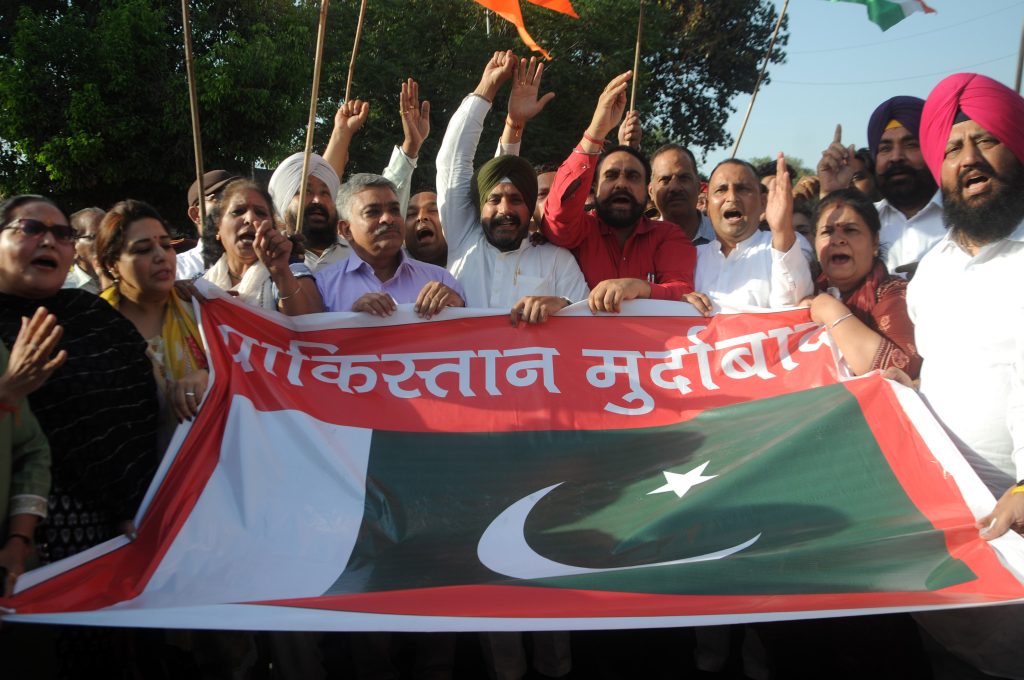 ਪ੍ਰਦਰਸ਼ਨਕਾਰੀਆਂ ਨੇ ਅਤਿਵਾਦ ਨੂੰ ਸ਼ਹਿ ਦੇਣ ਲਈ ਪਾਕਿਸਤਾਨ ਦੀ ਨਿਖੇਧੀ ਕੀਤੀ; ਪਾਕਿਸਤਾਨ ਦਾ ਪੁਤਲਾ ਫੂਕਿਆ; ਦਹਿਸ਼ਤੀ ਘਟਨਾ ਇਨਸਾਨੀਅਤ ਤੇ ਕਸ਼ਮੀਰ ਦੀ ਤਰੱਕੀ ’ਤੇ ਹਮਲਾ: ਵਿਜੈ ਰੂਪਾਨੀ