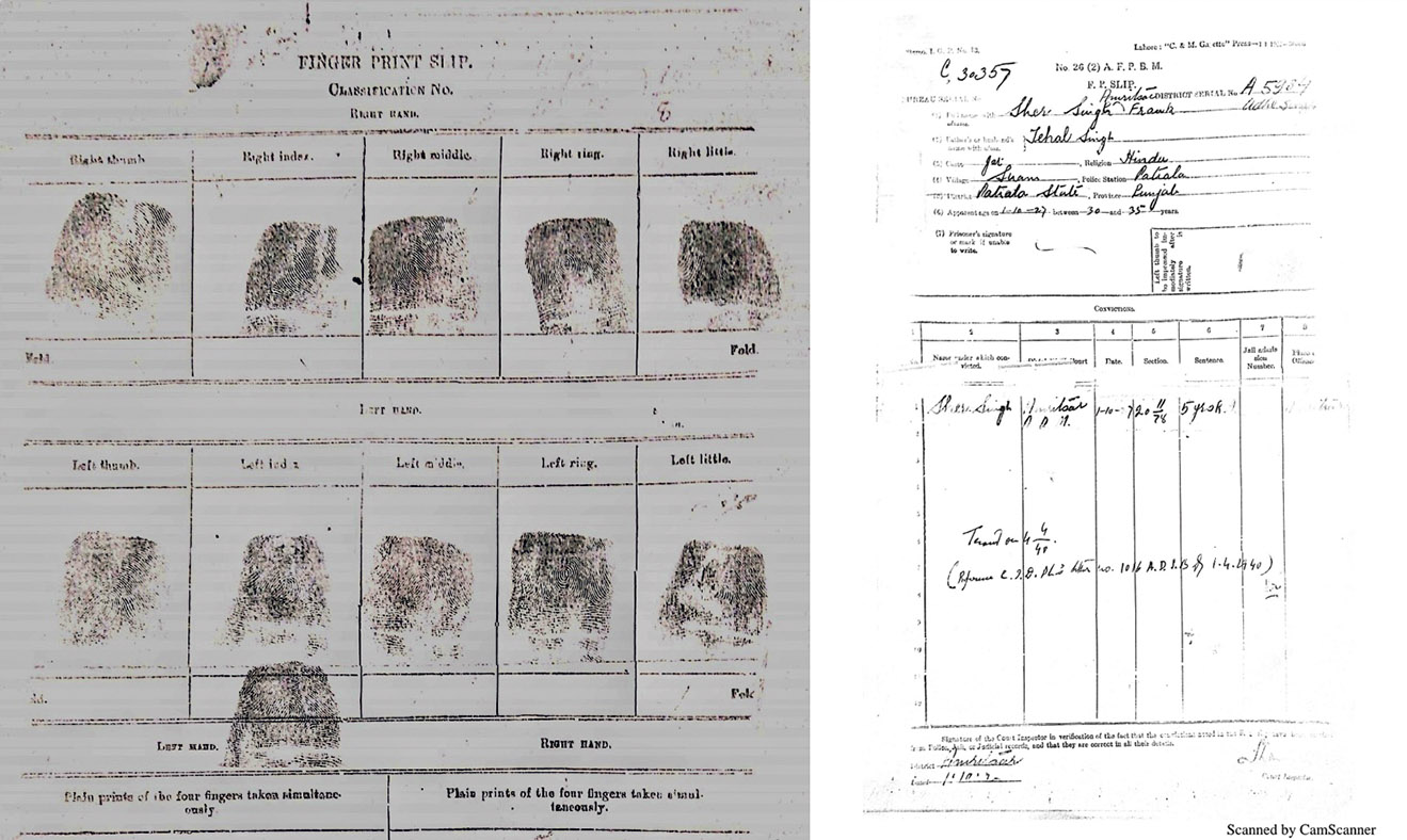ਪੂਰਾ ਦੇਸ਼ ਜਦੋਂ ਸ਼ਹੀਦ ਊਧਮ ਸਿੰਘ ਦਾ 84ਵਾਂ ਸ਼ਹੀਦੀ ਦਿਹਾੜਾ ਮਨਾ ਕੇ ਹਟਿਆ ਹੈ ਤੇ ਉਨ੍ਹਾਂ ਦੀ ਜ਼ਿੰਦਗੀ ’ਤੇ ਬਣੀ ਫਿਲਮ ਨੇ ਲੰਘੇ ਦਿਨ ਕੌਮੀ ਪੁਰਸਕਾਰ ਜਿੱਤਿਆ ਹੈ ਤਾਂ ਅਜਿਹੇ ਮੌਕੇ ਫਿਲੌਰ ਸਥਿਤ ਪੰਜਾਬ ਪੁਲੀਸ ਅਕੈਡਮੀ ਵਿਚੋਂ ਸ਼ਹੀਦ ਦੀਆਂ ਉਂਗਲਾਂ ਦੇ ਪ੍ਰਿੰਟ ਮਿਲੇ ਹਨ, ਜੋ ਹੁਣ ਤੱਕ ਆਮ ਲੋਕਾਂ ਦੀਆਂ ਨਜ਼ਰਾਂ ਤੋਂ ਲੁਕੇ ਹੋਏ ਸਨ। ਊਧਮ ਸਿੰਘ ਦੀਆਂ ਉਂਗਲਾਂ ਦੇ ਪ੍ਰਿੰਟ ਵਾਲੀਆਂ ਇਹ ਵਿਰਲੀਆਂ ਕਾਪੀਆਂ ਸਾਲ 1927 ਵਿੱਚ ਲਈਆਂ ਗਈਆਂ ਸਨ, ਜਦੋਂ ਉਸ ਨੂੰ ਗ਼ਦਰ ਪਾਰਟੀ ਦੇ ਕਾਰਕੁਨ ਵਜੋਂ ਗ੍ਰਿਫ਼ਤਾਰ ਕੀਤਾ ਗਿਆ ਸੀ। ਇਸ ਪੱਤਰਕਾਰ ਨੂੰ ਊਧਮ ਸਿੰਘ ਦੇ ‘ਫਿੰਗਰ ਪ੍ਰਿੰਟ’ ਵਾਲੀਆਂ ਇਹ ਕਾਪੀਆਂ ਉਦੋਂ ਮਿਲੀਆਂ ਜਦੋਂ ਉਹ ਪੰਜਾਬ ਪੁਲੀਸ ਦੀ ਮਦਦ ਨਾਲ ਪੁਲੀਸ ਅਕੈਡਮੀ ਵਿਚੋਂ ਸ਼ਹੀਦ ਭਗਤ ਸਿੰਘ ਦੀਆਂ ਉਂਗਲਾਂ ਦੇ ਪ੍ਰਿੰਟਾਂ ਦੀ ਭਾਲ ਕਰ ਰਿਹਾ ਸੀ। ਫਿਲੌਰ ਸਥਿਤ ਪੰਜਾਬ ਪੁਲੀਸ ਅਕੈਡਮੀ 1860 ਤੋਂ ਪੁਲੀਸ ਕੇਸ ਫਾਈਲਾਂ, ਦਸਤਾਵੇਜ਼ਾਂ ਤੇ ਹਥਿਆਰਾਂ ਦਾ ਮਾਲਖਾਨਾ ਹੈ, ਉਦੋਂ ਇਸ ਦਾ ਨਾਮ ਮਿਲਟਰੀ ਪੁਲੀਸ ਫੋਰਸ ਸੀ ਤੇ ਮਗਰੋਂ 1891 ਵਿੱਚ ਇਹ ਪੁਲੀਸ ਅਕੈਡਮੀ ਬਣ ਗਈ।