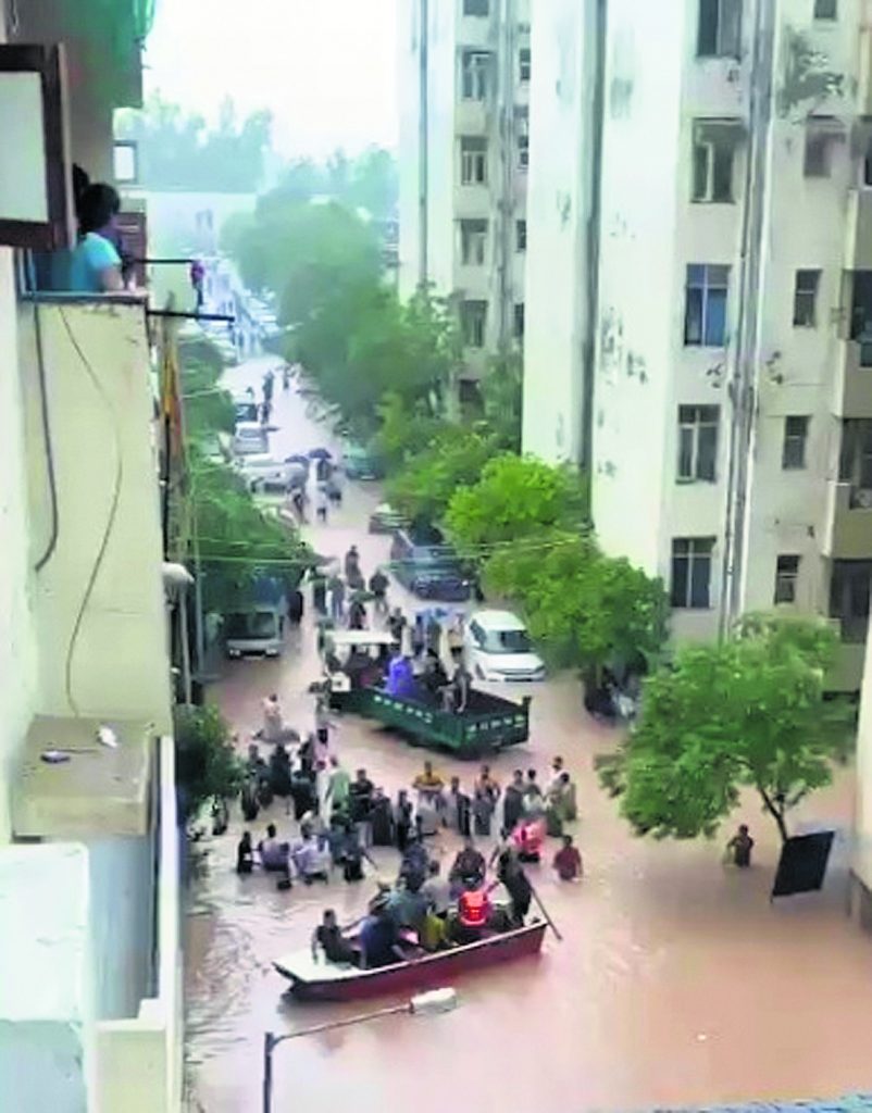 ਸੂਬੇ ਵਿਚ ਇੱਕੋ ਰਾਤ ’ਚ ਹੋਈ 270 ਐੱਮਐੱਮ ਵਰਖਾ ਨੇ ‘ਫਲੱਡ ਮਾਡਲ’ ਹੀ ਤਹਿਸ-ਨਹਿਸ ਕਰ ਦਿੱਤਾ। ਆਮ ਤੌਰ ’ਤੇ ਜੁਲਾਈ ਵਿਚ ਔਸਤਨ 170 ਐੱਮਐੱਮ ਮੀਂਹ ਦਾ ਪੈਟਰਨ ਹੈ। ਮੌਸਮ ਵਿਭਾਗ ਨੇ ਭਲਕੇ ਮੀਂਹ ਦੀ ਪੇਸ਼ੀਨਗੋਈ ਕੀਤੀ ਹੈ ਅਤੇ 13 ਜੁਲਾਈ ਨੂੰ ਮੁੜ ਮੀਂਹ ਪੈਣ ਦਾ ਅਨੁਮਾਨ ਹੈ। ਤਿੰਨ ਦਨਿਾਂ ਤੋਂ ਪੈ ਰਹੇ ਮੀਂਹ ਨਾਲ ਸ਼ਹਿਰਾਂ ਦੇ ਨਿਕਾਸੀ ਪ੍ਰਬੰਧ ਪੂਰੀ ਤਰ੍ਹਾਂ ਡਗਮਗਾ ਗਏ ਹਨ। ਇਸੇ ਦੌਰਾਨ ਪੰਜਾਬ ਪੁਲੀਸ ਨੂੰ ਅਲਰਟ ਕੀਤਾ ਗਿਆ ਹੈ ਜਦੋਂ ਕਿ ਗ੍ਰਹਿ ਵਿਭਾਗ ਨੇ ਮੁਹਾਲੀ ਅਤੇ ਪਟਿਆਲਾ ਜ਼ਿਲ੍ਹੇ ਵਿਚ ਬਣੇ ਨਾਜ਼ੁਕ ਹਾਲਾਤ ਦੇ ਮੱਦੇਨਜ਼ਰ ਫ਼ੌਜ ਤੋਂ ਮਦਦ ਮੰਗੀ ਹੈ। ਸਤਲੁਜ ਦਰਿਆ ’ਚ ਪਾਣੀ ਦਾ ਪੱਧਰ ਵਧਣ ਕਰਕੇ ਬੇਟ ਤੇ ਮੰਡ ਦਾ ਖੇਤਰ ਪੂਰੀ ਤਰ੍ਹਾਂ ਖ਼ਤਰੇ ਹੇਠ ਆ ਗਏ ਹਨ। ਰੋਪੜ, ਨਵਾਂਸ਼ਹਿਰ ਅਤੇ ਮੁਹਾਲੀ ਜ਼ਿਲ੍ਹਿਆਂ ਵਿਚ ਭਲਕੇ ਸਕੂਲਾਂ ਵਿਚ ਛੁੱਟੀ ਐਲਾਨ ਦਿੱਤੀ ਗਈ ਹੈ। ਪੰਜਾਬੀ ’ਵਰਸਿਟੀ ਨੇ ਸੋਮਵਾਰ ਨੂੰ ਹੋਣ ਵਾਲੇ ਸਾਰੇ ਪੇਪਰ ਮੁਲਤਵੀ ਕਰ ਦਿੱਤੇ ਹਨ। ਇਸੇ ਦੌਰਾਨ ਪੰਜਾਬ ਸਕੂਲ ਸਿੱਖਿਆ ਬੋਰਡ ਨੇ ਭਲਕੇ ਸੋਮਵਾਰ ਨੂੰ ਸੂਬੇ ਦੇ ਸਾਰੇ ਪ੍ਰੀਖਿਆ ਕੇਂਦਰਾਂ ਵਿੱਚ ਹੋਣ ਵਾਲੀ ਪੰਜਵੀਂ ਸ਼੍ਰੇਣੀ ਦੀ ਵਾਤਾਵਰਨ ਸਿੱਖਿਆ ਅਤੇ ਅੱਠਵੀਂ ਦੀ ਸਾਇੰਸ ਵਿਸ਼ੇ ਦੀ ਰੀ-ਅਪੀਅਰ ਪ੍ਰੀਖਿਆ ਅਗਲੇ ਹੁਕਮਾਂ ਤੱਕ ਮੁਲਤਵੀ ਕਰ ਦਿੱਤੀ ਹੈ। ਖਰੜ ਵਿਚ ਇੱਕ ਰਿਹਾਇਸ਼ੀ ਇਮਾਰਤ ਡਿੱਗ ਗਈ ਹੈ ਜਦੋਂ ਕਿ ਰੋਪੜ ਜ਼ਿਲ੍ਹੇ ’ਚ ਇੱਕ ਕੇਂਦਰੀ ਸਕੂਲ ਦੀ ਇਮਾਰਤ ਨੂੰ ਵੀ ਨੁਕਸਾਨ ਪੁੱਜਾ ਹੈ। ਕੁਰਾਲੀ ਵਿਚ ਮੀਂਹ ਦਾ ਪਾਣੀ ਘਰਾਂ ਵਿਚ ਦਾਖ਼ਲ ਹੋ ਗਿਆ।