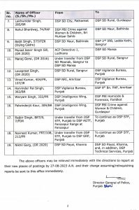 ਪੰਜਾਬ ’ਚ ਮੌੜ ਅਤੇ ਮਾਨਸਾ ਸਮੇਤ ਕਈ ਸ਼ਹਿਰਾਂ ਦੇ ਡੀਐੱਸਪੀ ਬਦਲੇ