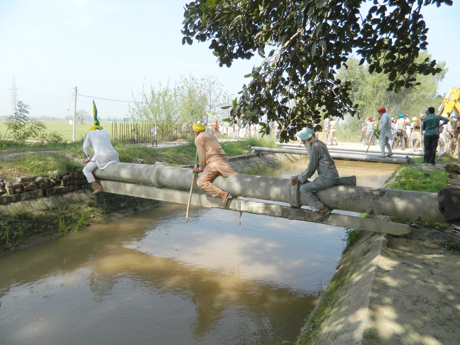 ਕਿਸਾਨਾਂ ਨੇ ਪੁਲੀਸ ਨਾਕੇ ਤੋੜਦਿਆਂ ਖੇਤਾਂ ਵਿੱਚ ਜਾ ਕੇ ਪਾਈਪ ਲਾਈਨ ਦਾ ਕੰਮ ਰੋਕਿਆ