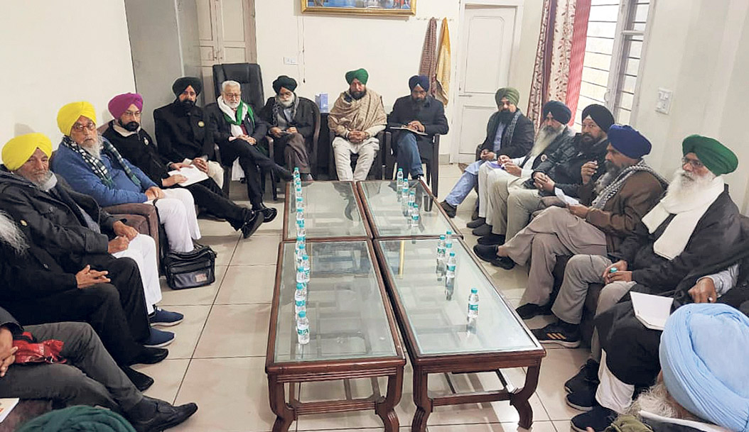 ਐੱਸਕੇਐੱਮ, ਸੰਯੁਕਤ ਕਿਸਾਨ ਮੋਰਚਾ (ਗੈਰਸਿਆਸੀ) ਤੇ ਕਿਸਾਨ ਮਜ਼ਦੂਰ ਮੋਰਚਾ ਦੇ ਆਗੂ ਏਕਤਾ ਲਈ ਸੱਦੀ ਬੈਠਕ ਦੌਰਾਨ ਗੱਲਬਾਤ ਕਰਦੇ ਹੋਏ। -ਫੋਟੋ: ਰਾਜੇਸ਼ ਸੱਚਰ