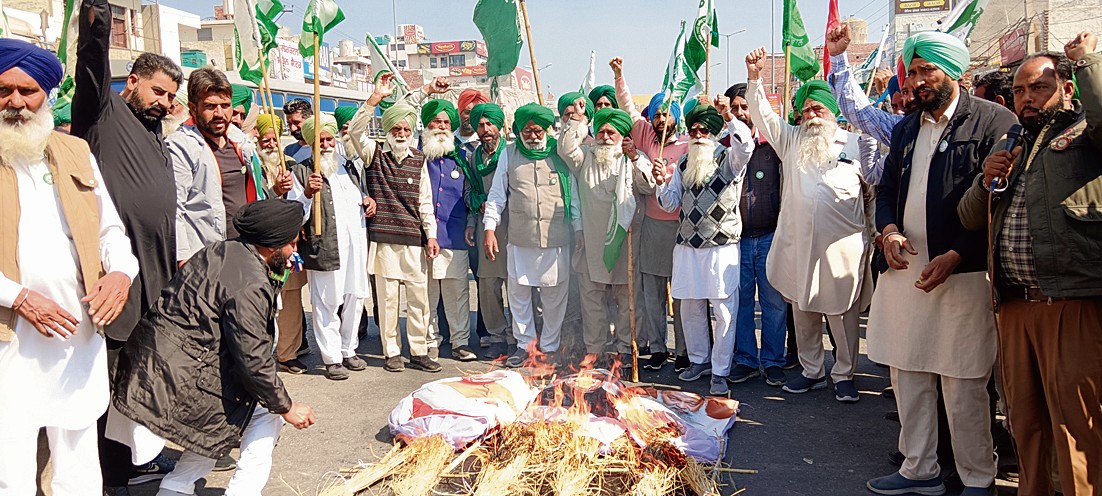 ਕਿਸਾਨਾਂ ਨੇ ਕਾਲੀਆਂ ਪੱਟੀਆਂ ਬੰਨ੍ਹ ਕੇ ਨਰਿੰਦਰ ਮੋਦੀ, ਅਮਿਤ ਸ਼ਾਹ, ਖੱਟਰ ਤੇ ਅਨਿਲ ਵਿੱਜ ਦੇ ਪੁਤਲੇ ਫੂਕੇ