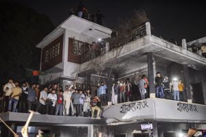 ਇਥੇ ਹਸੀਨਾ ਦੇ ਲਾਈਵ ਆਨਲਾਈਨ ਸੰਬੋਧਨ ਤੋਂ ਬਾਅਦ ਮਾਹੌਲ ਵਿਗੜ ਗਿਆ। ਕਈ ਹਜ਼ਾਰ ਲੋਕਾਂ ਨੇ ਰਾਜਧਾਨੀ ਦੇ ਧਨਮੰਡੀ ਖੇਤਰ ਵਿੱਚ ਹਸੀਨਾ ਦੇ ਪਿਤਾ ਮੁਜੀਬੁਰ ਰਹਿਮਾਨ ਦੇ ਘਰ ਦੇ ਸਾਹਮਣੇ ਰੈਲੀ ਕੀਤੀ, ਜਿਸ ਨੂੰ ਪਹਿਲਾਂ ਇੱਕ ਯਾਦਗਾਰ ਅਜਾਇਬ ਘਰ ਵਿੱਚ ਬਦਲ ਦਿੱਤਾ ਗਿਆ ਸੀ। ਇਸ ਤੋਂ ਬਾਅਦ ਇੱਕ ਖੁਦਾਈ ਕਰਨ ਵਾਲੇ ਨੇ ਰਿਹਾਇਸ਼ ਨੂੰ ਢਾਹੁਣਾ ਸ਼ੁਰੂ ਕਰ ਦਿੱਤਾ।