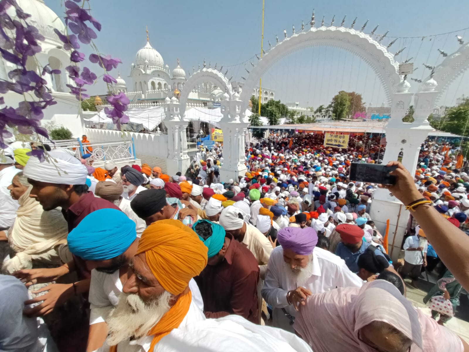 ਸਵੇਰ ਤੋਂ ਹੀ ਗੁਰਦੁਆਰਾ ਸਾਹਿਬ ’ਚ ਸ਼ਰਧਾਵਾਨਾਂ ਦੀਆਂ ਲੰਮੀਆਂ ਕਤਾਰਾਂ ਦਿਖਾਈ ਦਿੱਤੀਆਂ।