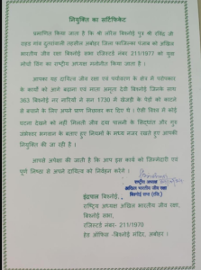 ਲਾਰੇਂਸ ਬਿਸ਼ਨੋਈ ਦਾ ਨਿਯੁਕਤੀ ਪੱਤਰ:-