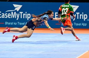 ਇਸੇ ਤਰ੍ਹਾਂ ਭਾਰਤੀ ਮਹਿਲਾ ਟੀਮ ਨੇ ਸ਼ਾਨਦਾਰ ਪ੍ਰਦਰਸ਼ਨ ਕਰਦੇ ਹੋਏ ਬੰਗਲਾਦੇਸ਼ ਨੂੰ ਅੱਜ ਇੱਥੇ 109-16 ਦੇ ਵੱਡੇ ਫ਼ਰਕ ਨਾਲ ਹਰਾ ਕੇ ਖੋ ਖੋ ਵਿਸ਼ਵ ਕੱਪ ਦੇ ਸੈਮੀ ਫਾਈਨਲ ਵਿੱਚ ਆਪਣੀ ਜਗ੍ਹਾ ਪੱਕੀ ਕੀਤੀ। -ਪੀਟੀਆਈ